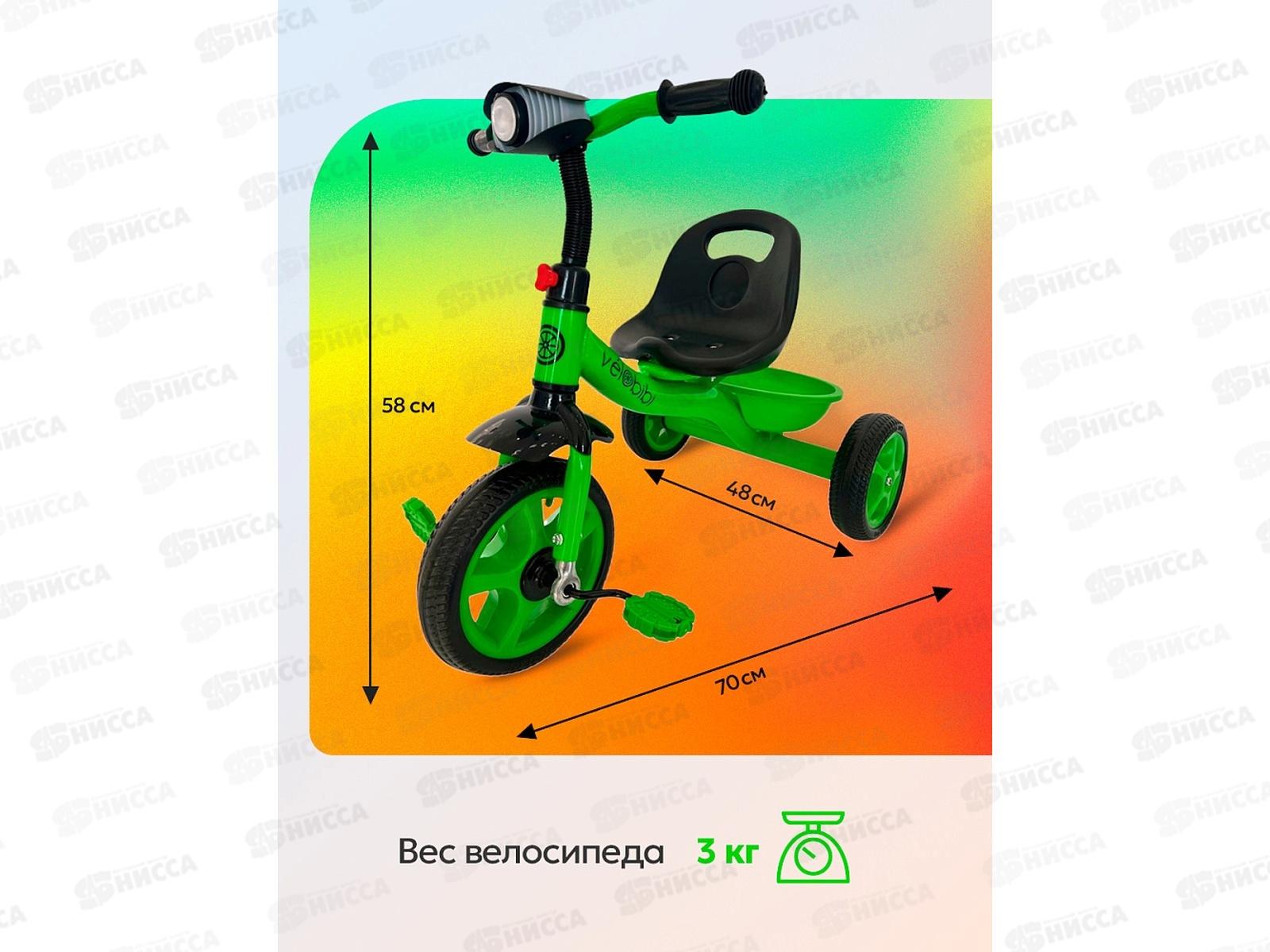 Велосипед трехколесный МЕТЕОР, ФОНАРИК зеленый, ВЛ-2664