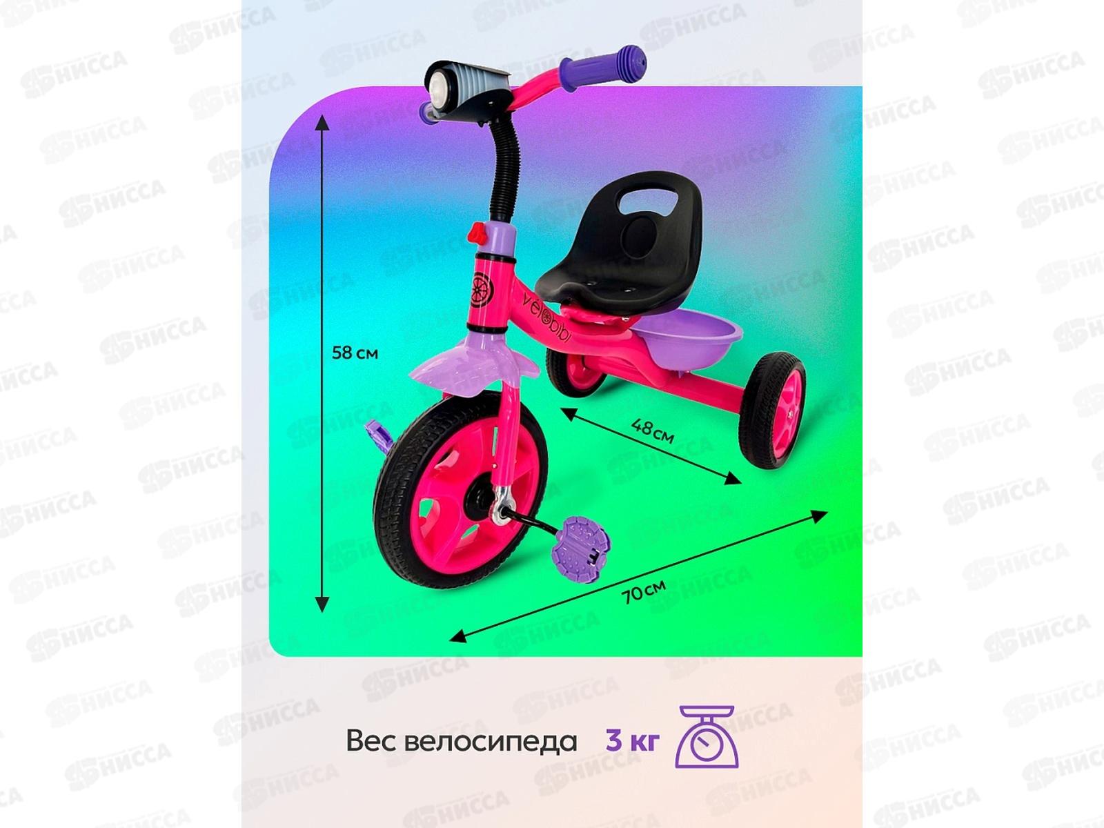 Велосипед трехколесный МЕТЕОР, ФОНАРИК розовый с фиолетовым, ВЛ-2667