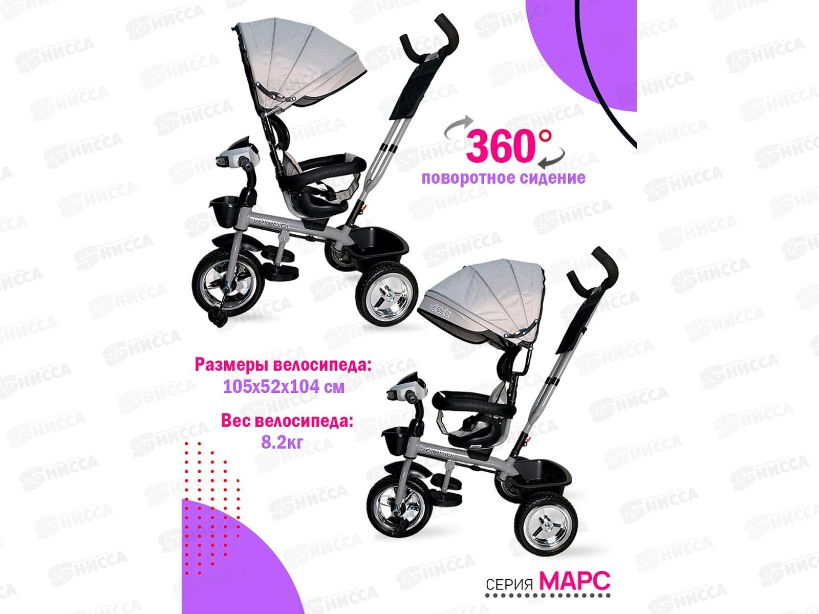 Велосипед трехколесный с ручкой МАРС, серый, ВЛ-5422