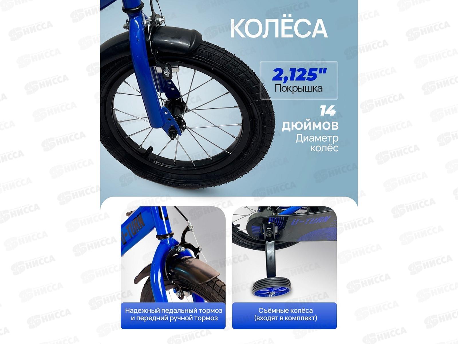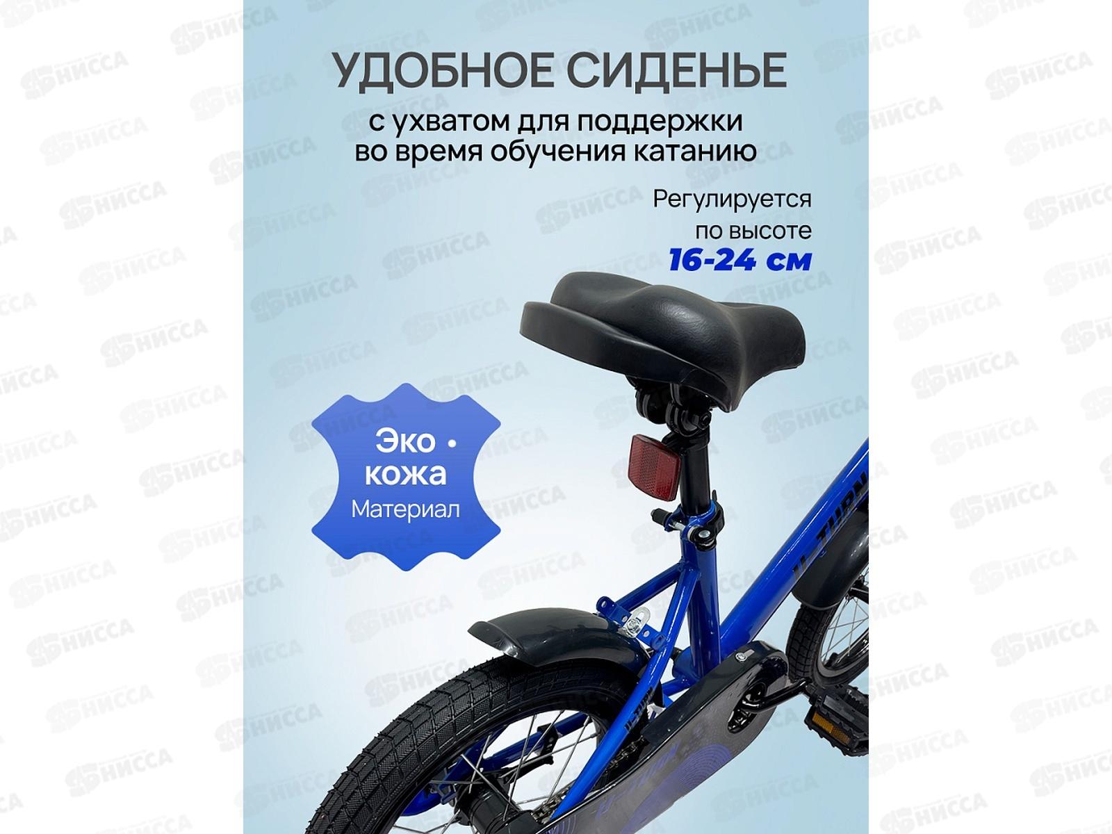 Велосипед 14" с боковыми тренировочными колёсами. Синий, колеса 14 дюймов, ВЛ-5722