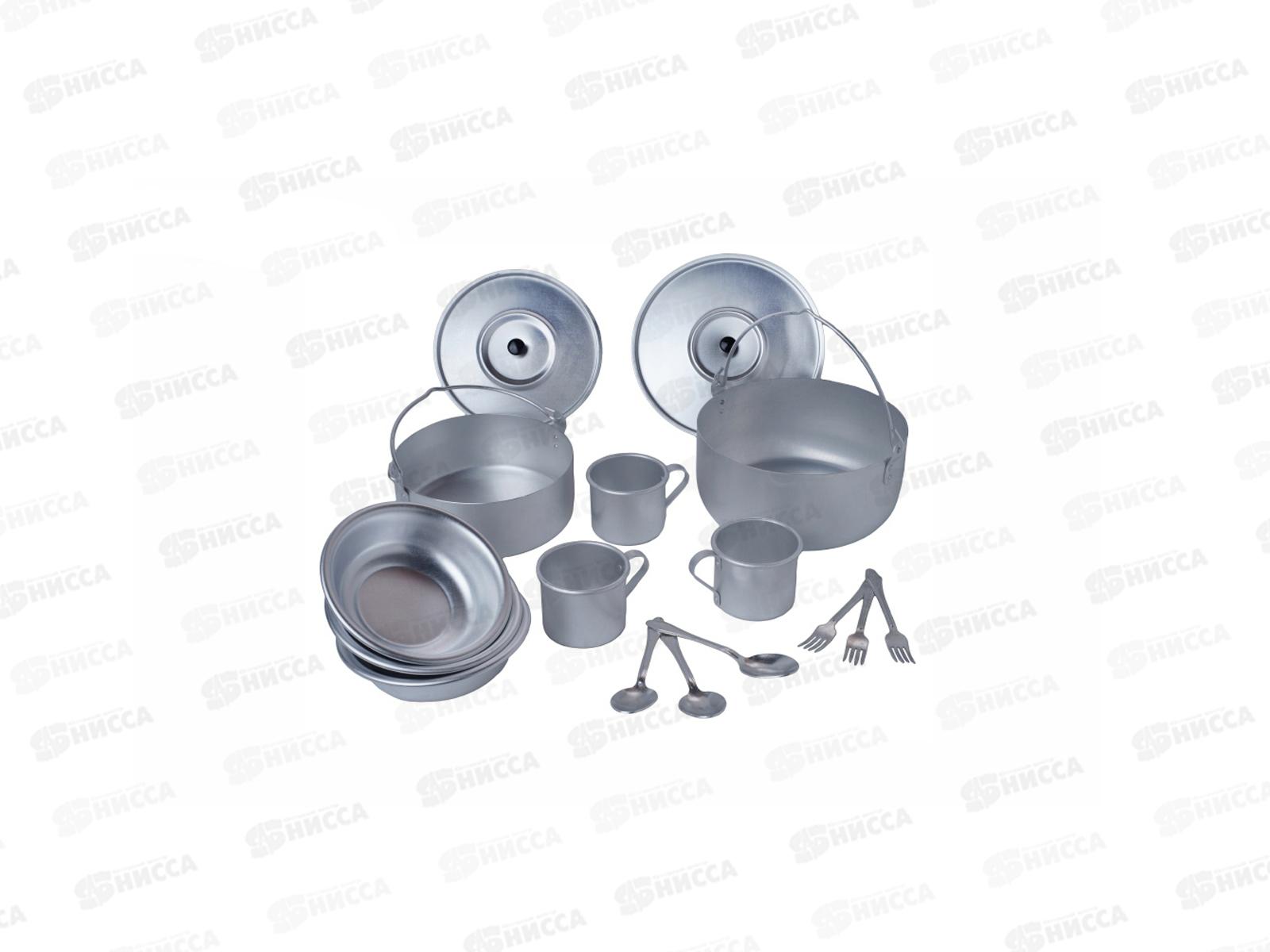 Алюминиевая матовая посуда — это давно проверенная классика. Универсальная, долговечная, недорогая, удобная. Она может пережить многие испытания и не понести потерь. Ей не страшны перепады температуры, жесткие металлически мочалки и абразивные моющие средства. Даже деформация корпуса, в принципе, не влияет на дальнейший процесс приготовления пищи. Состав набора: котелок походный, 2 шт (26 см, 22 см), миска, 3 шт (20 см), кружка, 3 шт (0.5 л), ложка, 3 шт, вилка, 3 шт.
