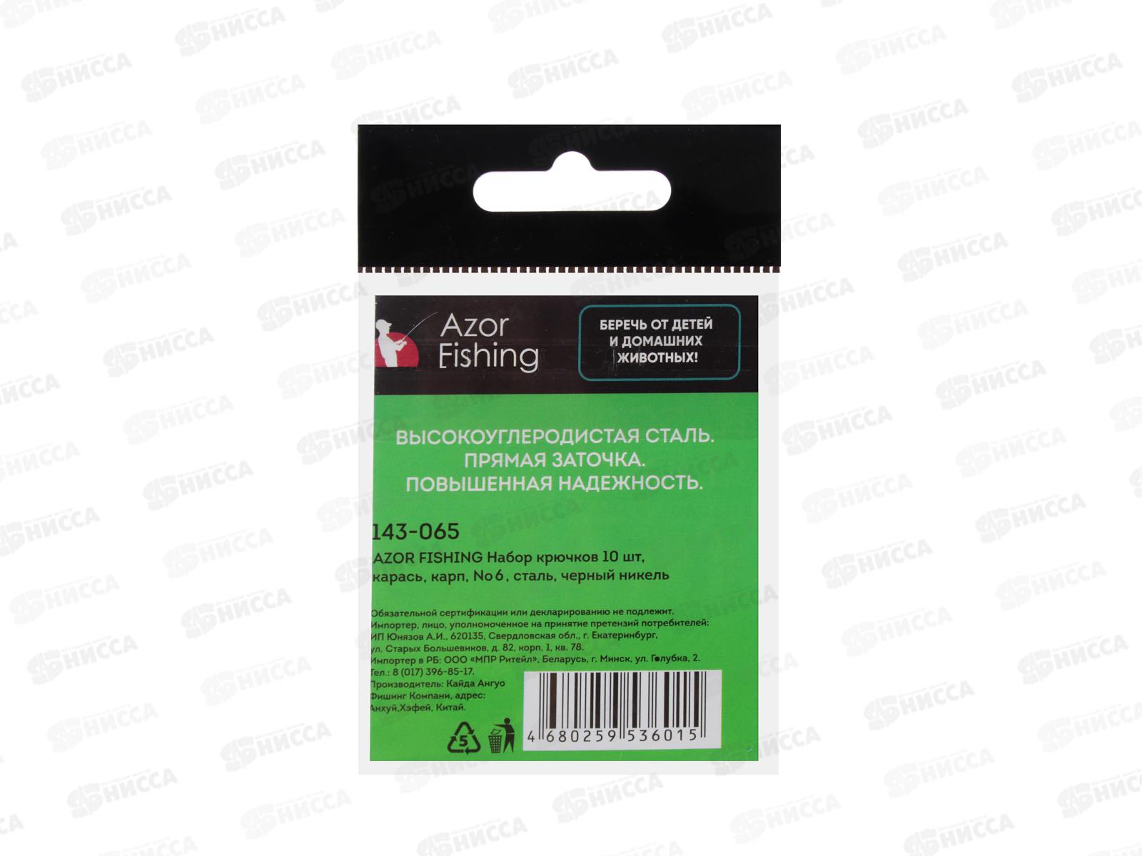 Набор крючков 10шт, AZOR Карась, Карп, 6-12 черный никель 143-065 г