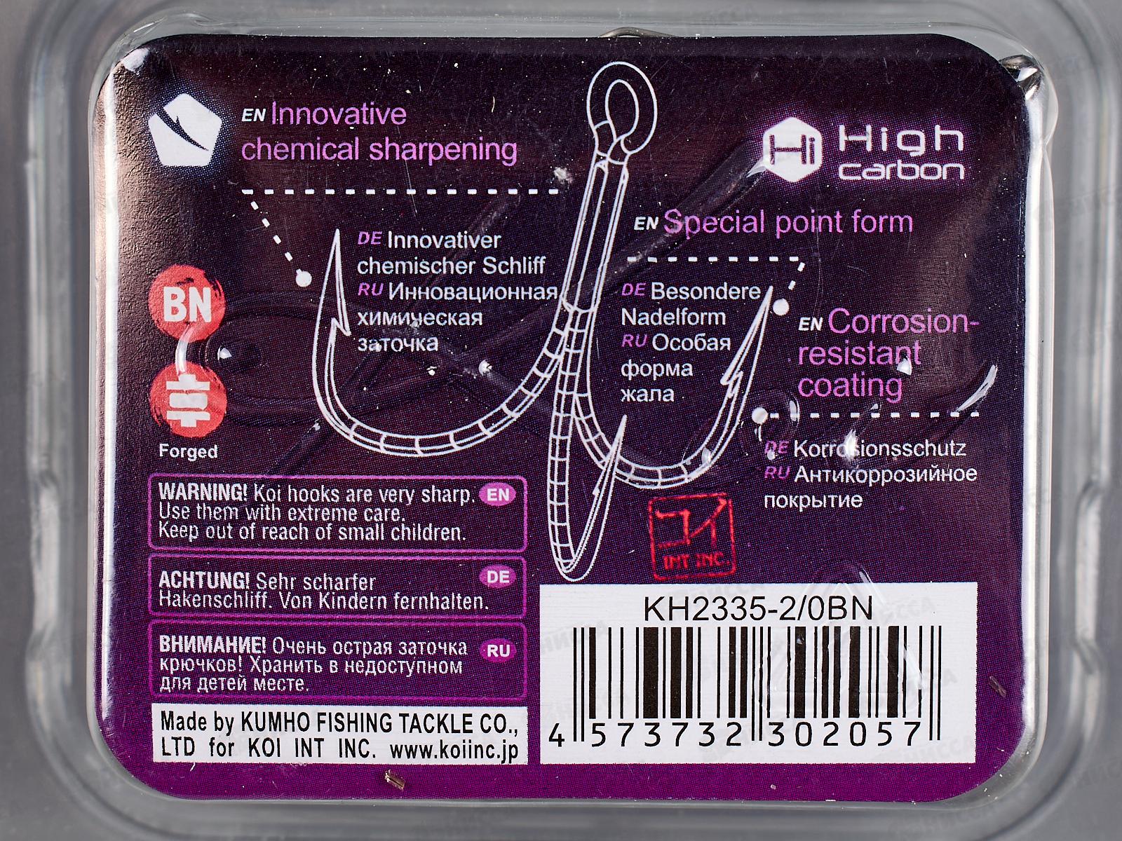Крючок KOI "WEEDLESS TREBLE HOOK" размер 2/0 (INT) цвет BN тройник незацепляйка (5шт) 2335-2/0BN