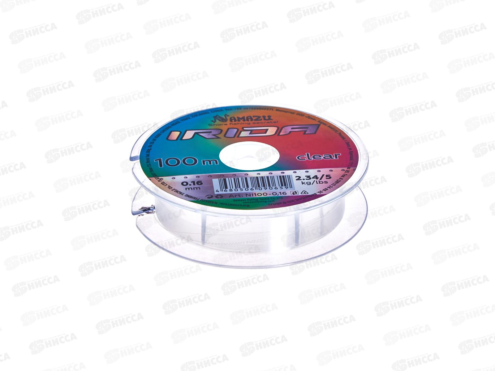 Леска Namazu "Irida", L-100м, d-0,16мм, test-2,34кг, прозрачная, уп.10