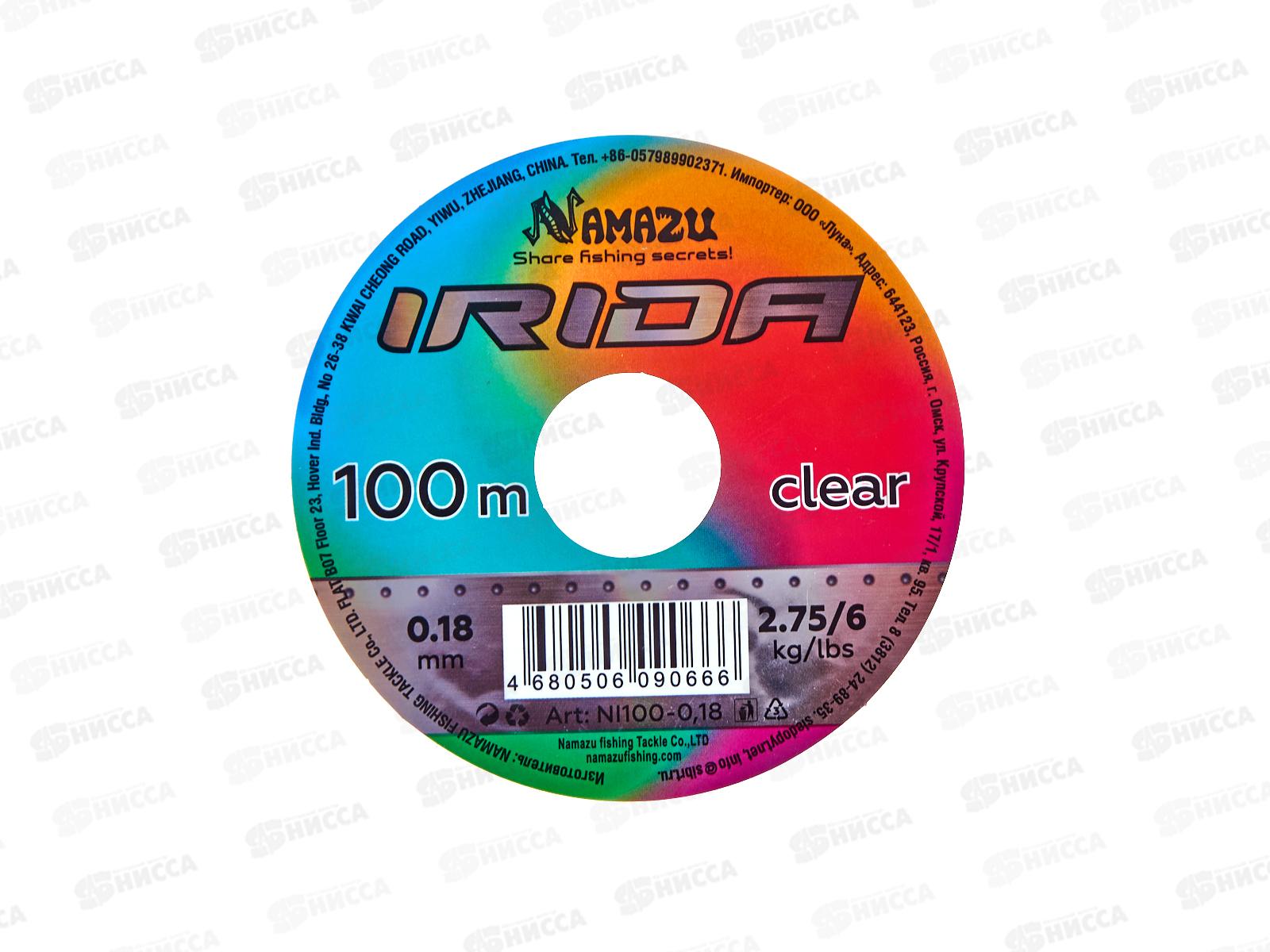 Леска Namazu "Irida", L-100м, d-0,18мм, test-2,75кг, прозрачная, уп.10