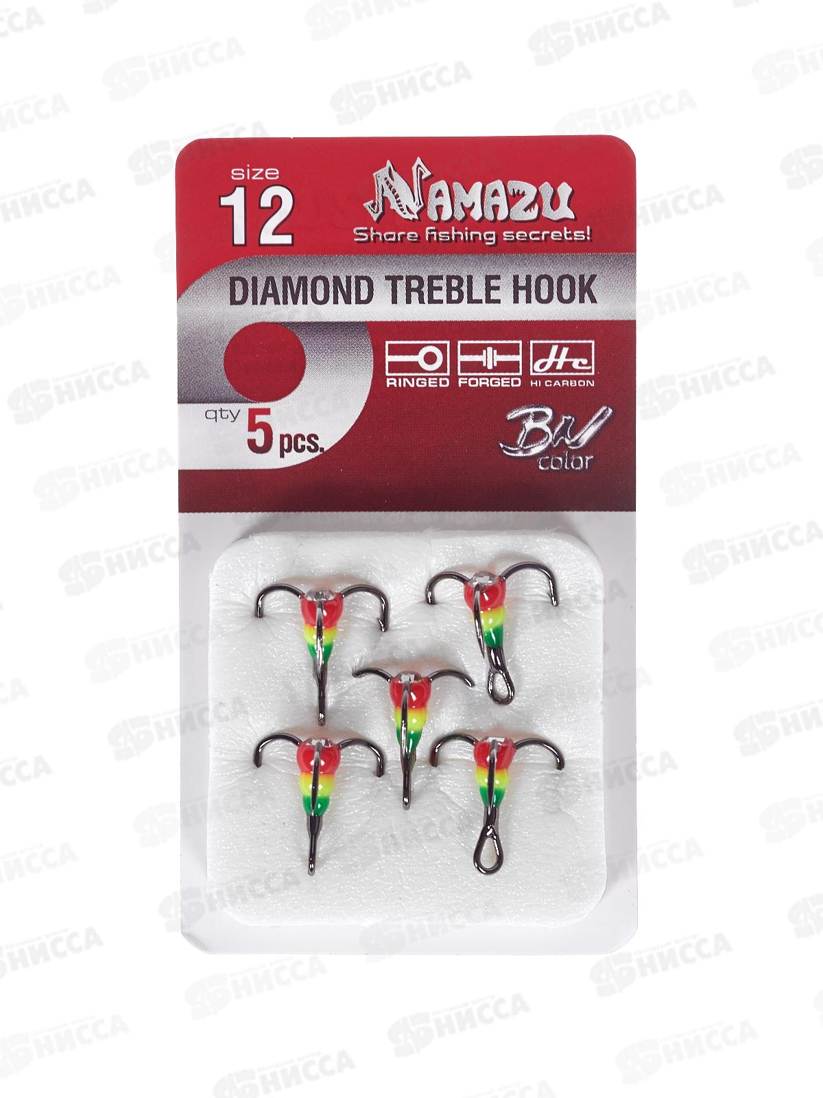 Крючок-тройник светофор Namazu с каплей и камнем, размер 12 (INT), цвет RYG (5 шт.)