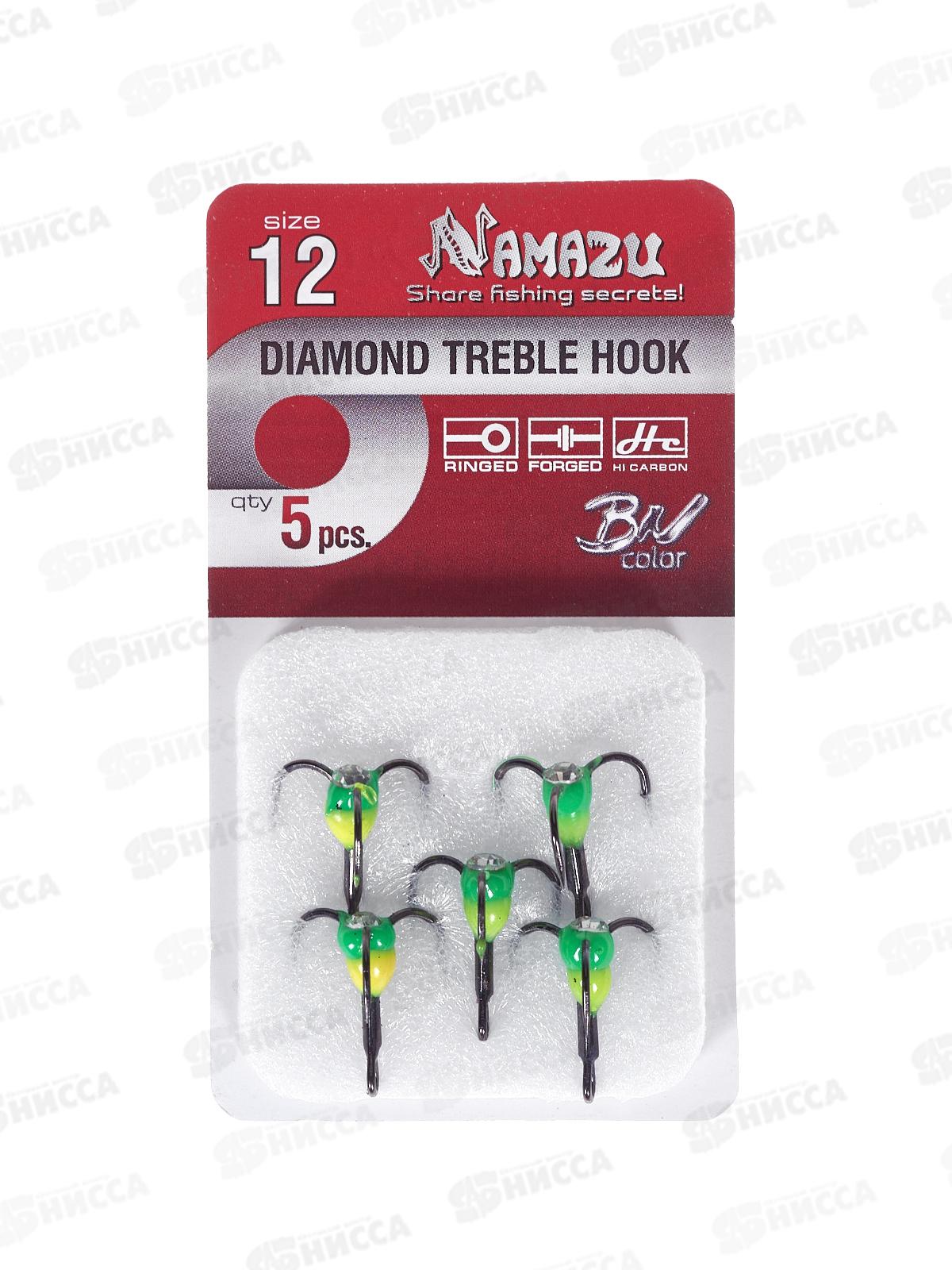 Крючок-тройник светофор Namazu с каплей и камнем, размер 12 (INT), цвет YG (5 шт.)/320/