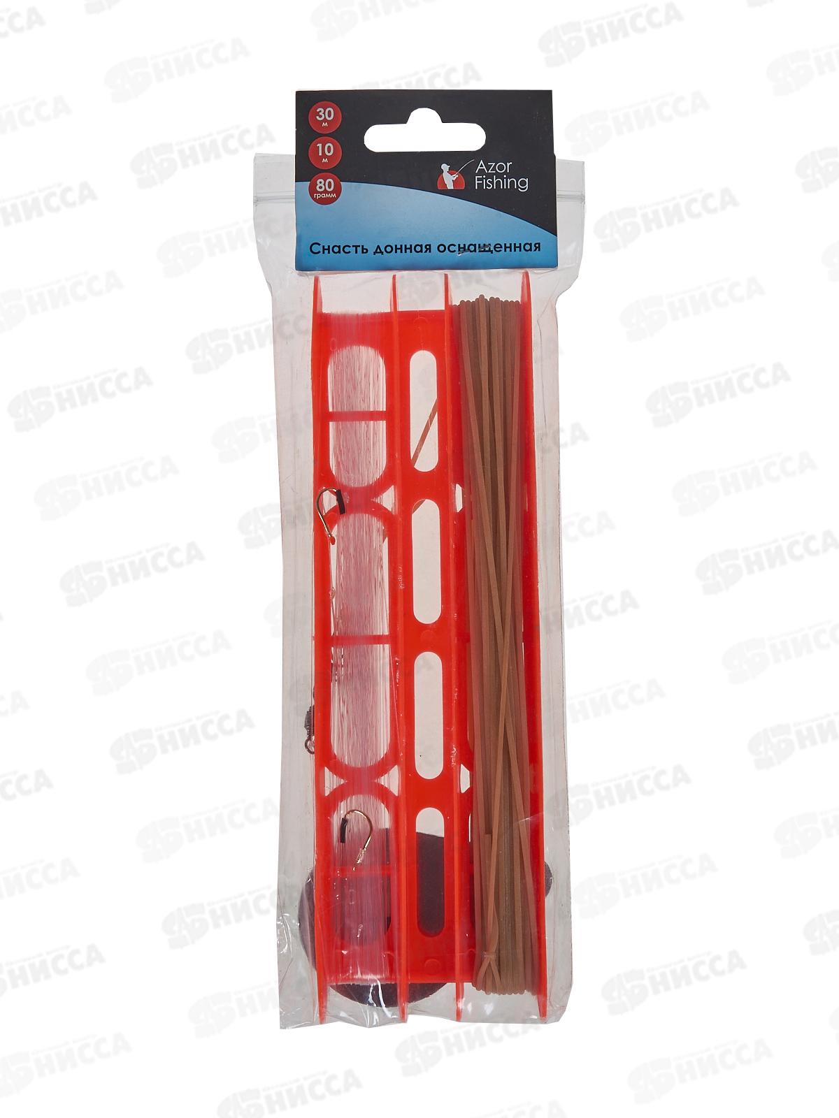 Донная снасть Azor Fishing включает важные принадлежности для успешной рыбалки. В комплект входит пять крючков, 30 метров лески, грузик весом 80 грамм, два карабина и 10 метров резинки. С помощью этих принадлежностей вы сможете создать эффективную оснастку, которая принесет большой улов.