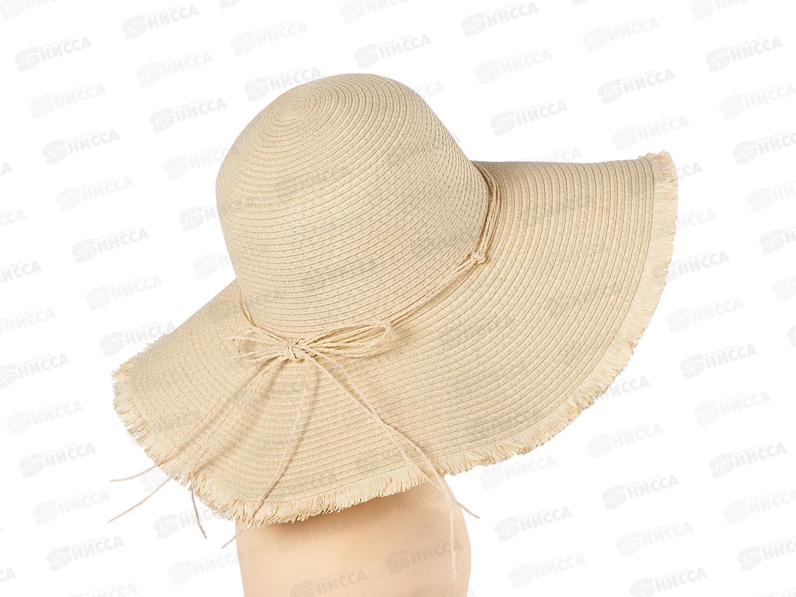 Летняя женская широкополая шляпка-панама из искусственной соломки с бахромой по краю полей. На тулье шнурок в тон шляпы.