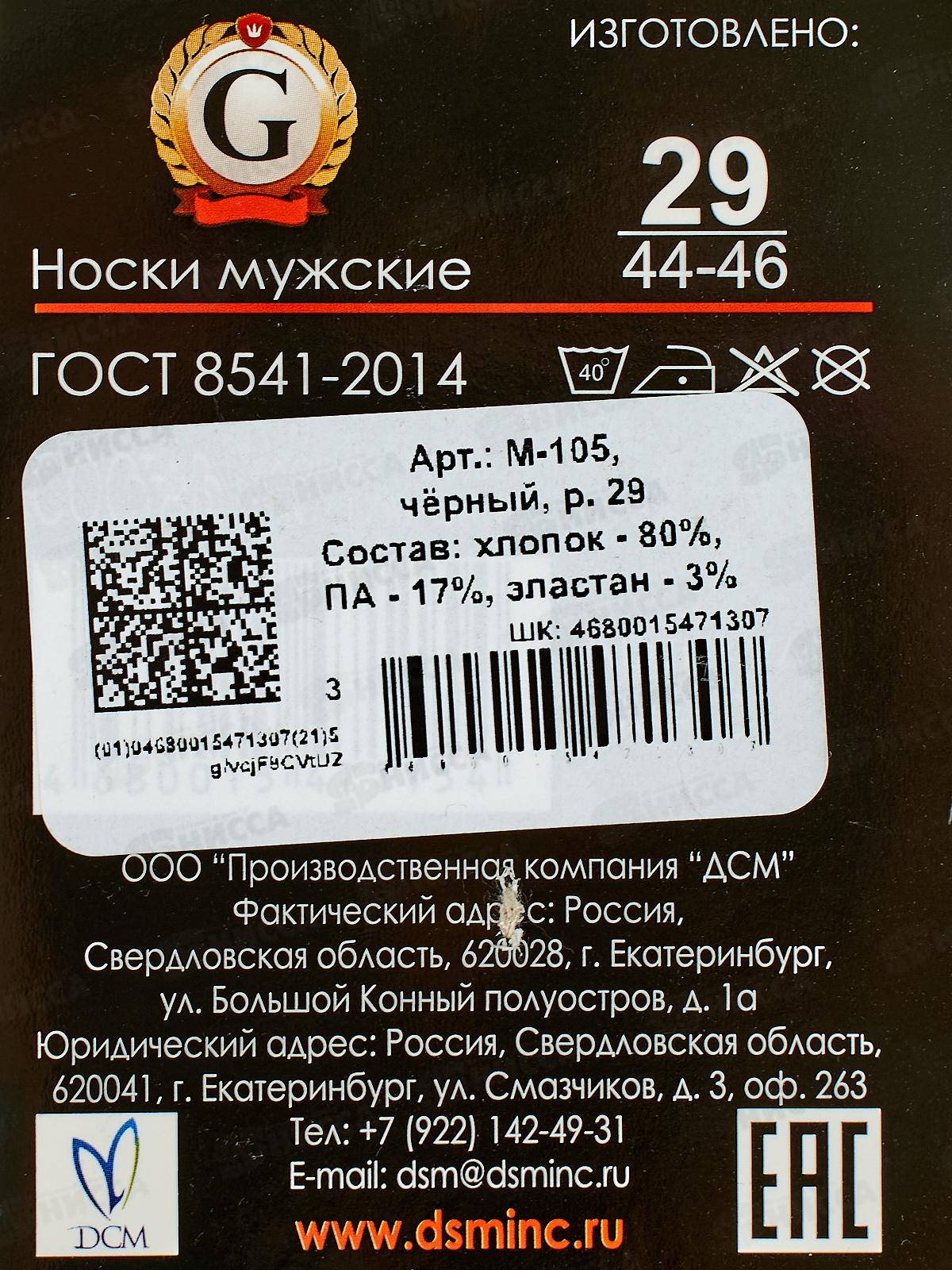 Носки мужские М-105 GRAND LINE черный р-29