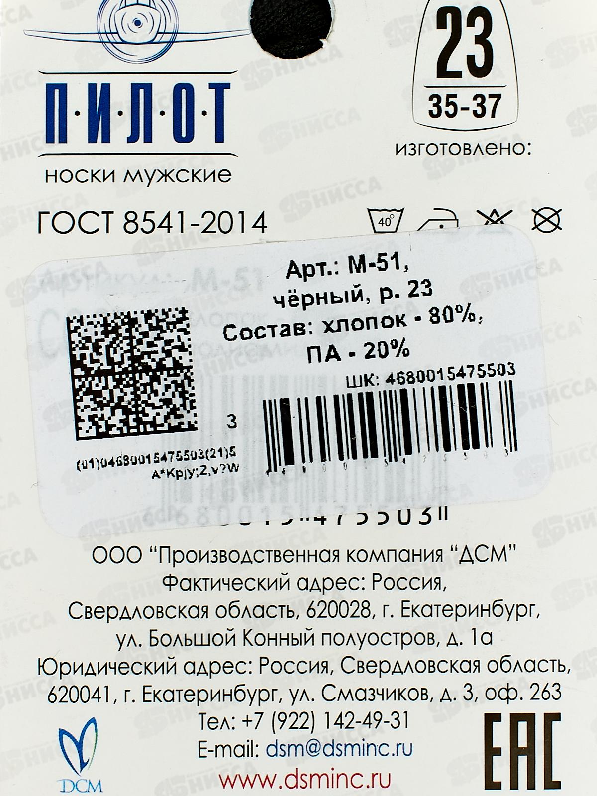 Носки муж М-51 ПИЛОТ черный р-23