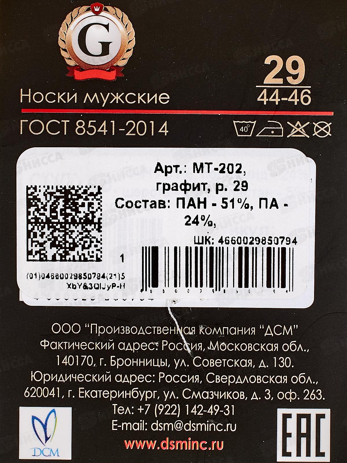 Носки муж МТ-202 GRAND LINE шерсть графит р-29