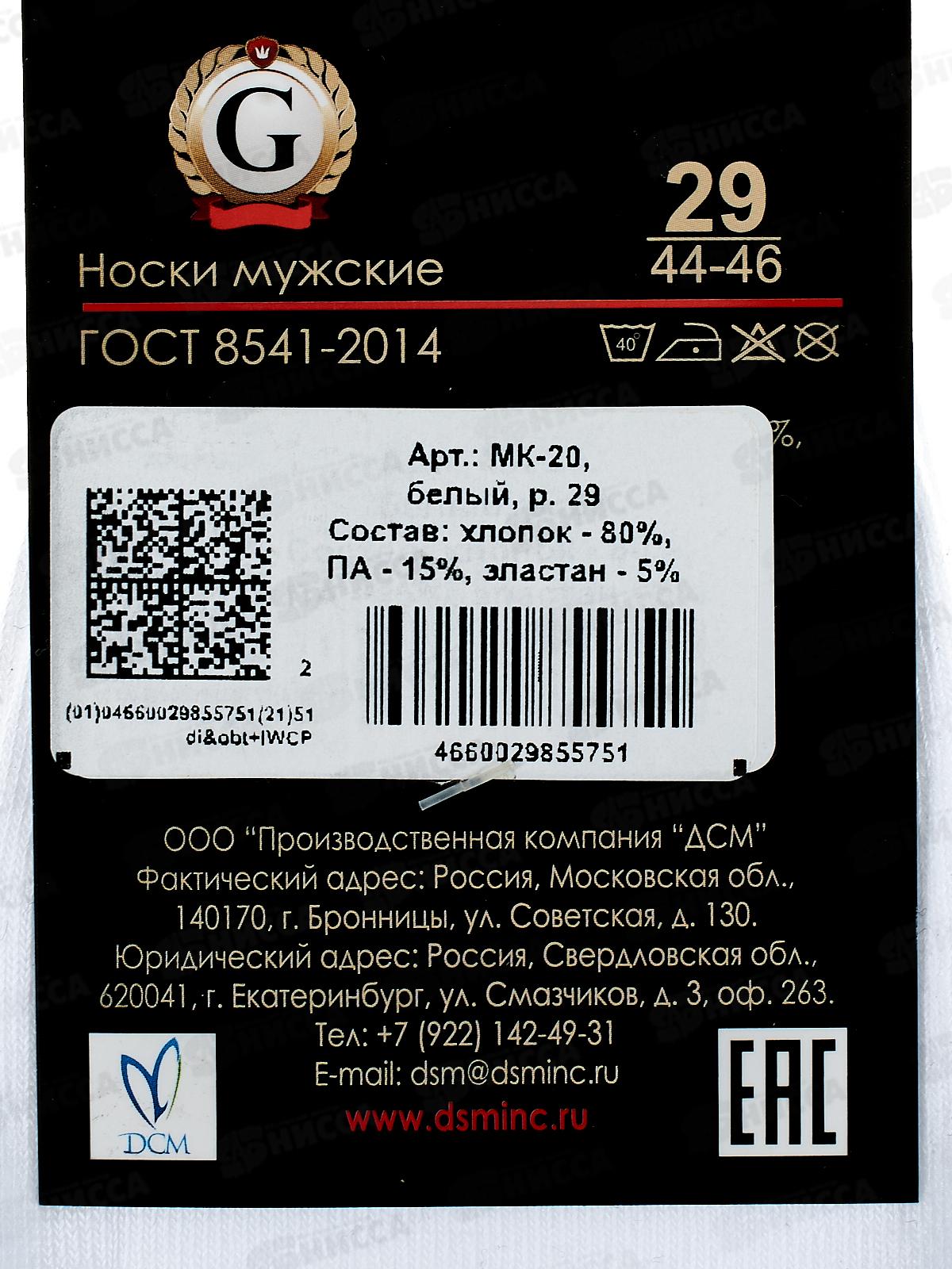 Носки муж МК-20 GRAND LINE укороченый паголенок белый р-29
