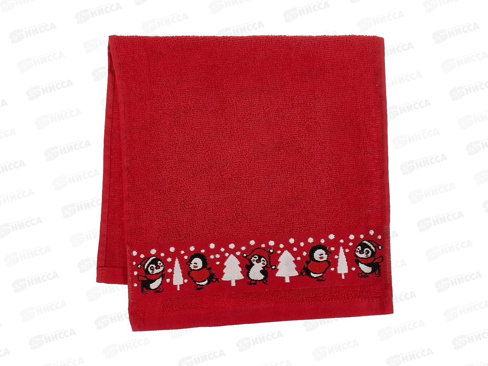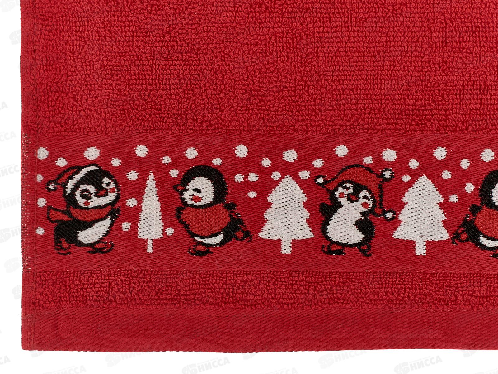 Полотенце махровое 30*60 +/- 2см Пингвинчики 04-088 красный