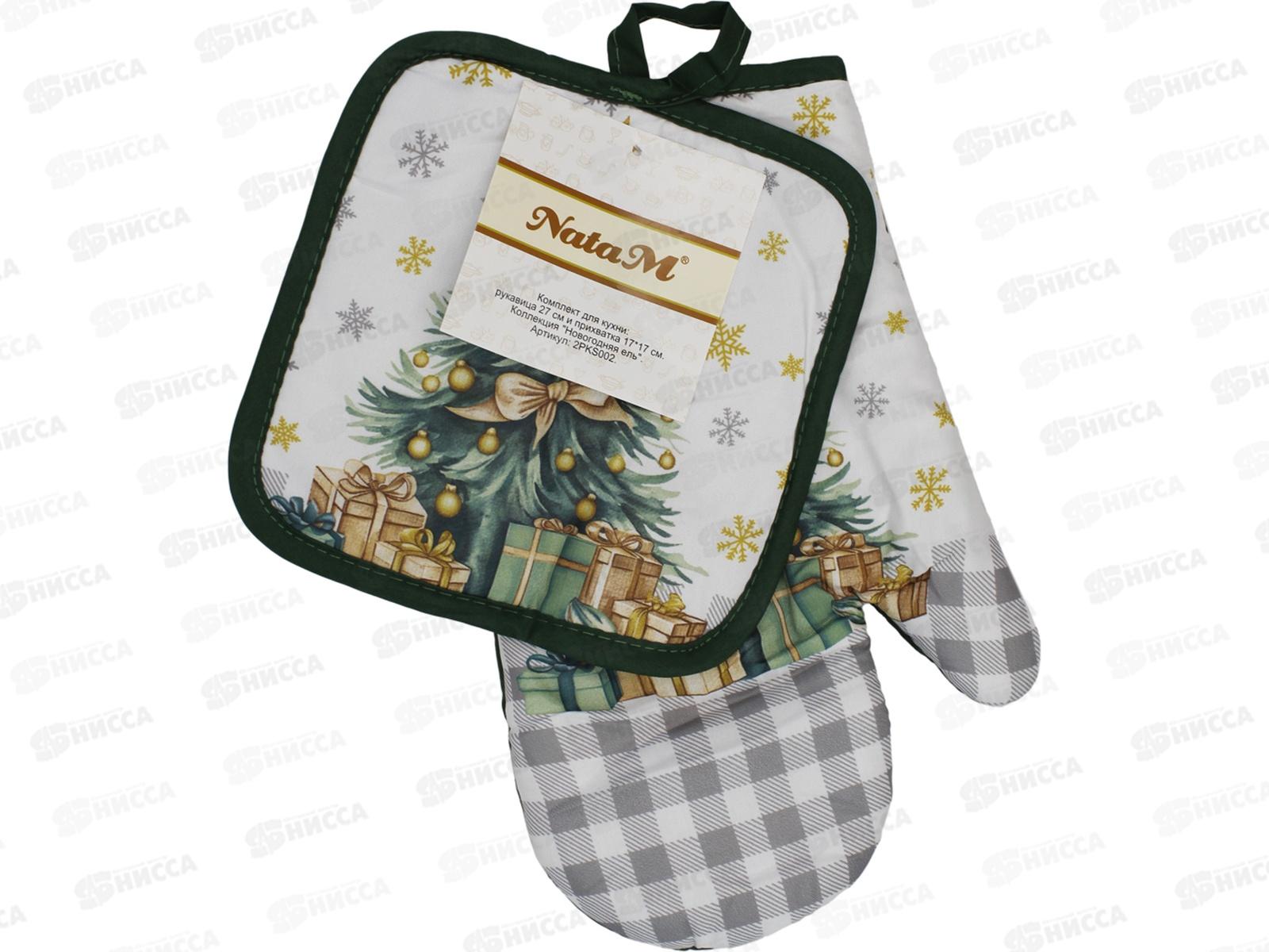 Набор для кухни: рукавица 27см и прихватка 17х17см "Новогодняя ель" полиэстер, 2РКS002 АТМ