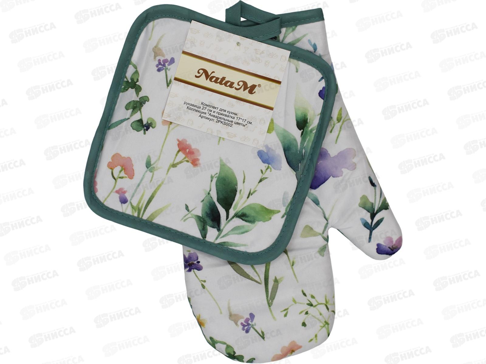 Набор для кухни: рукавица 27см и прихватка 17х17см "Акварельные цветы" полиэстер, 2РКS002