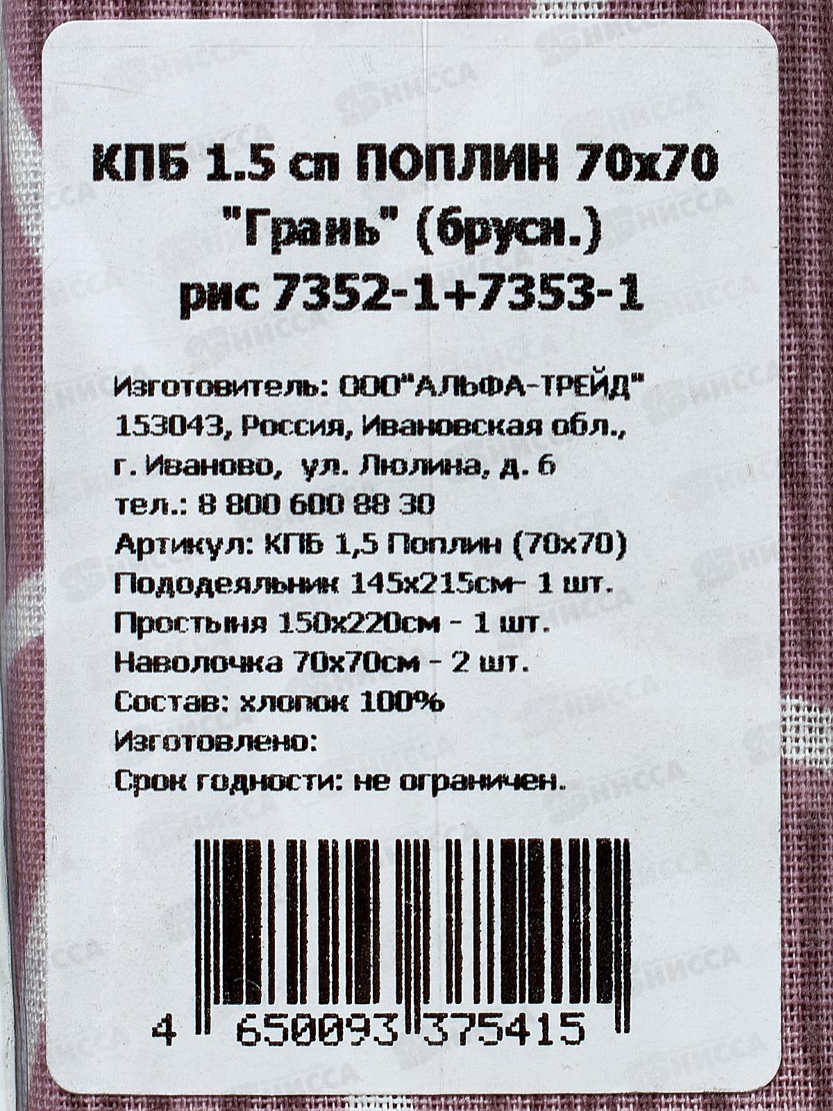 Комплект постельного белья 1,5 спальный Поплин НН Грань в.1 (брусничное)