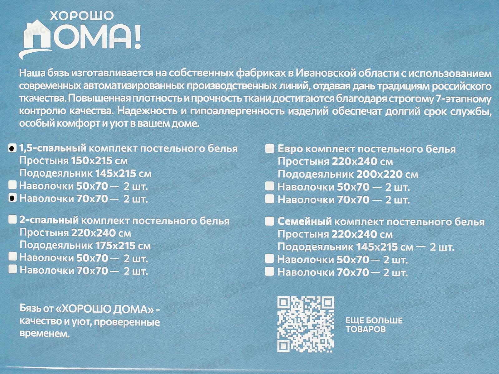 Комплект постельного белья 1,5сп Хорошо дома БЯЗЬ 70*70 30248/1