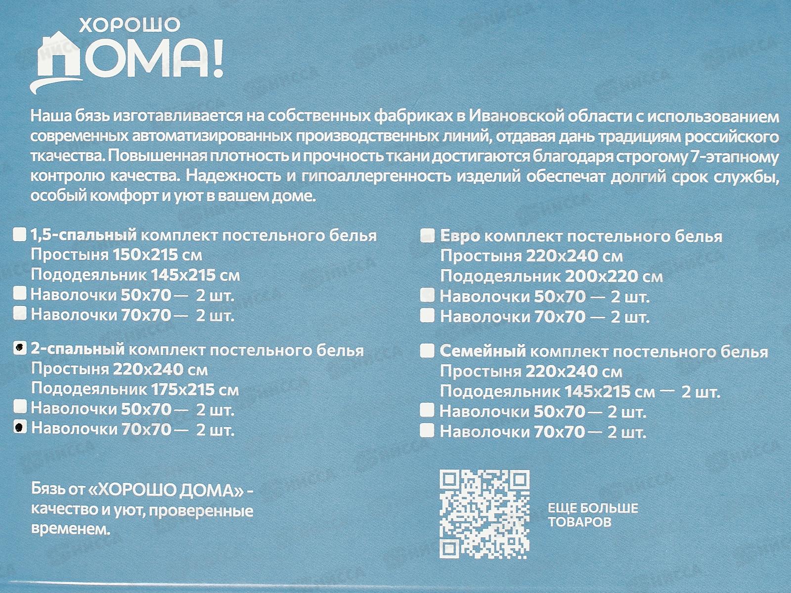 Комплект постельного белья 2,0сп Хорошо дома БЯЗЬ 70*70 30248/1