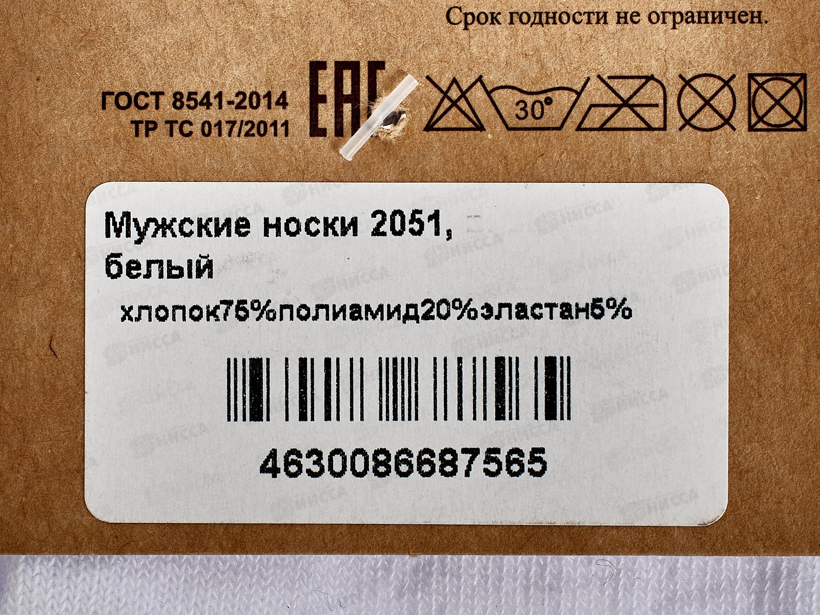 Носки мужские 2051 цвет белый , размер 27-29