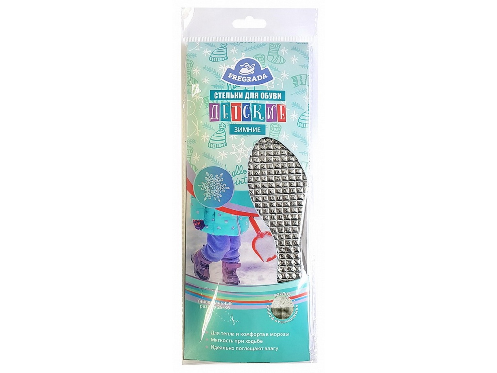 Многослойные детские, зимние стельки от бренда Pregrada, состоящие из натурального войлока, пенополиуретана и алюминиевой фольги. Подобранные материалы обладают высокими теплоизоляционными свойствами, алюминиевая фольга не пропускает холод снаружи, одновременно отражает тепло ступни внутрь. Способ применения: вырезать по линии, соответствующей Вашему размеру обуви. Поместить стельки в обувь войлочной поверхностью вверх. Стельки не рекомендуется стирать. В конце дня обязательно просушите.