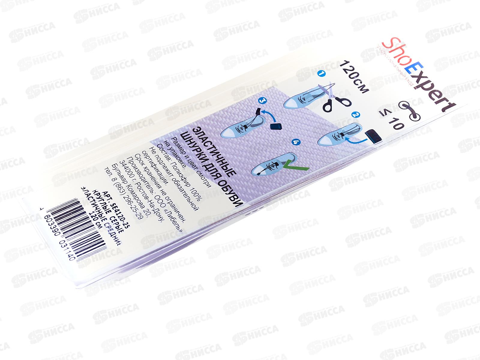 SHOExpert шнурки Эластичные средние 120см Серые блистер 4120-25