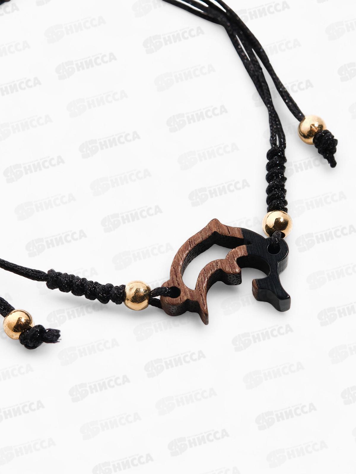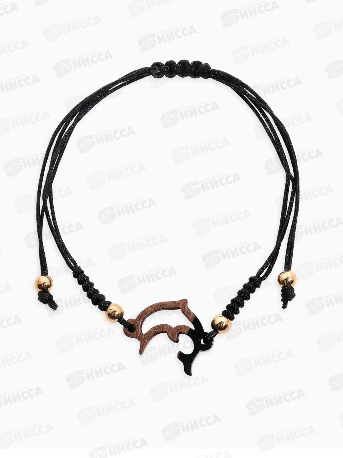 Браслет "Дельфинчик" на нити, цвет черный в золоте, 10826398