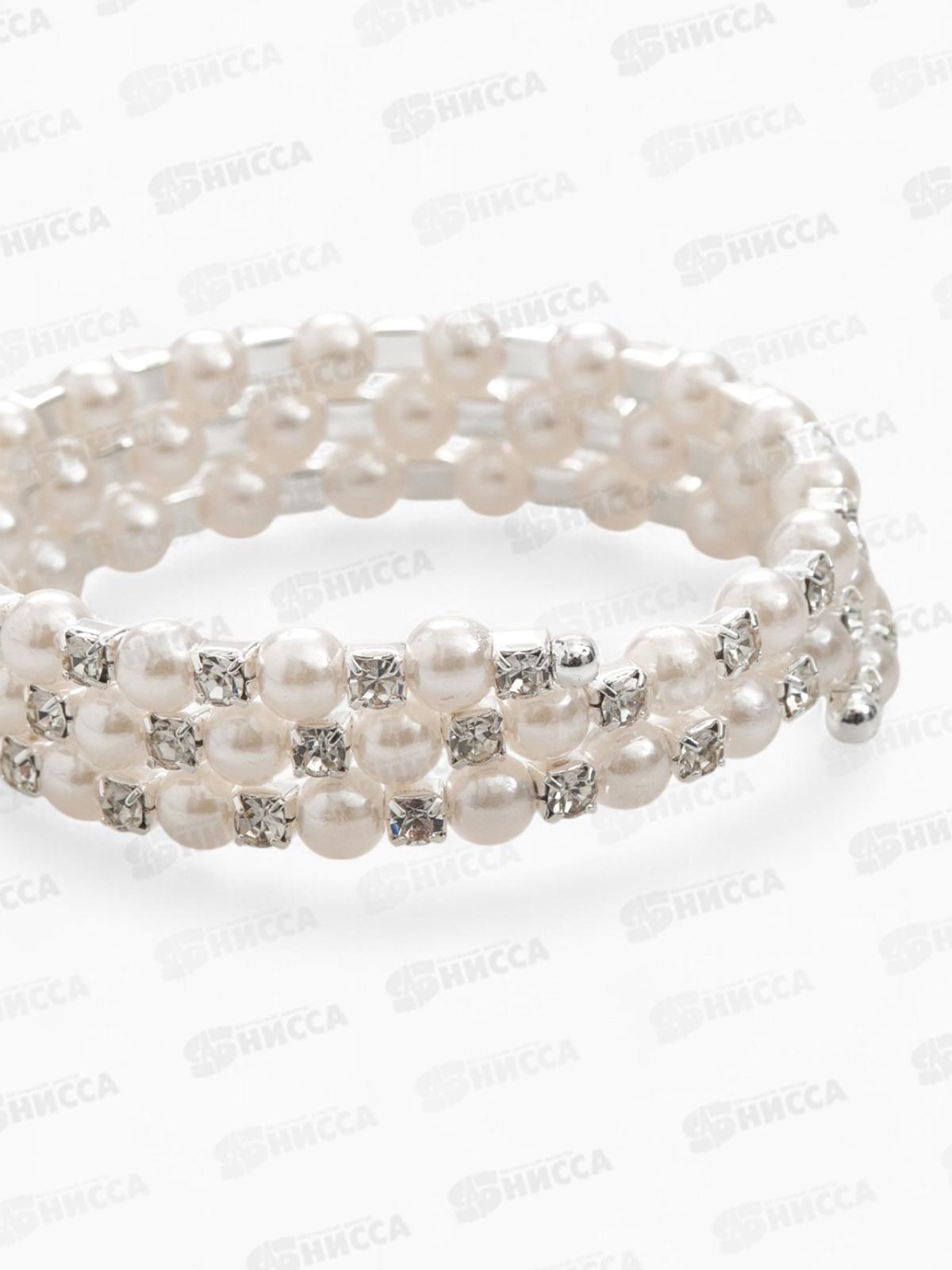Браслет с жемчугом "Пружинка" стразинки, белый в серебре 6см, 10897281