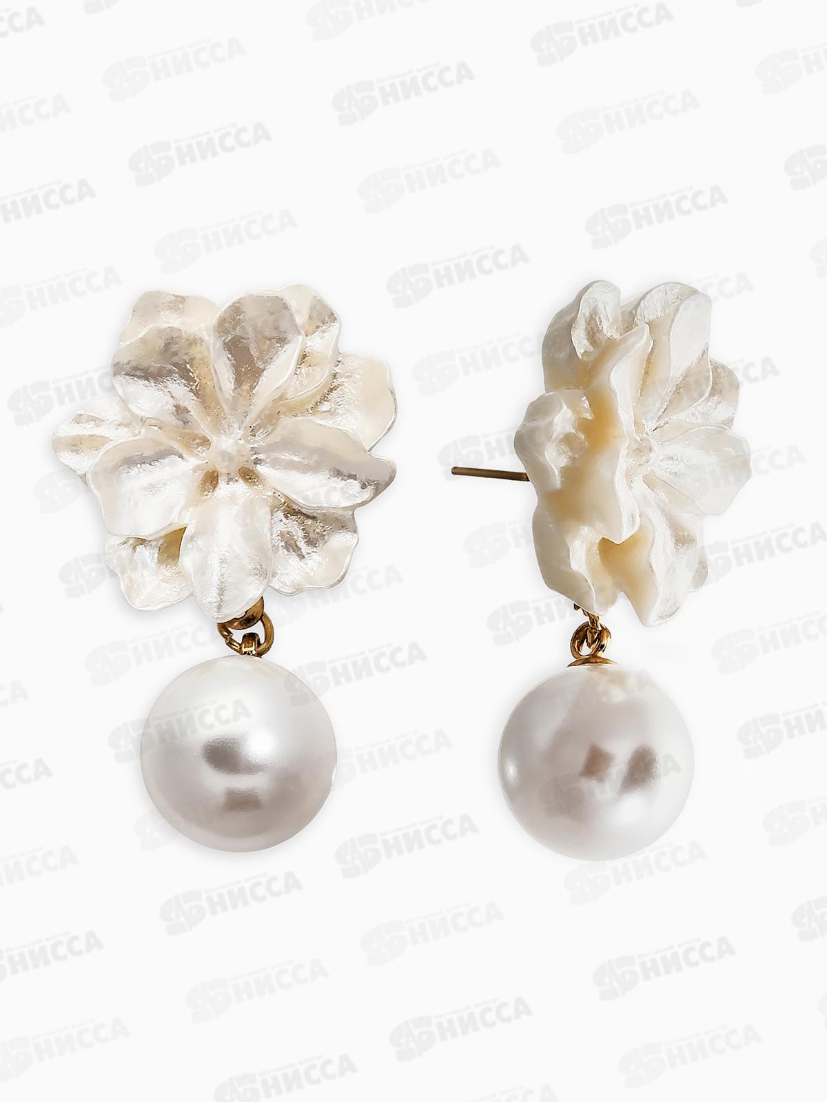 Серьги "Цветок с жемчугом" молочный в золоте 10904796