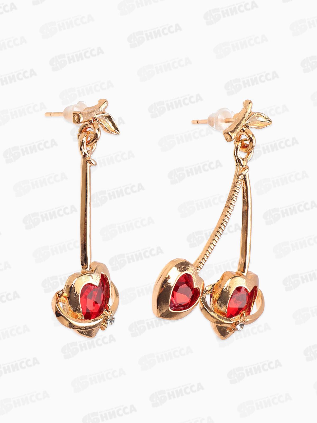 Серьги "Сердечная вишня" красный в золоте 10904812