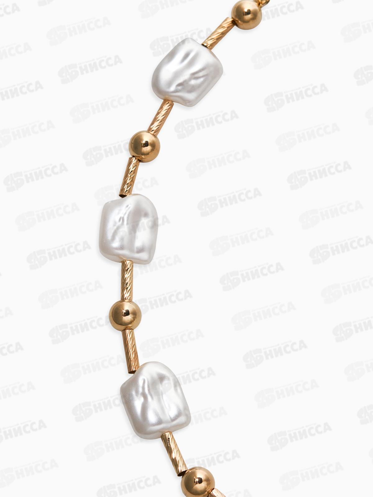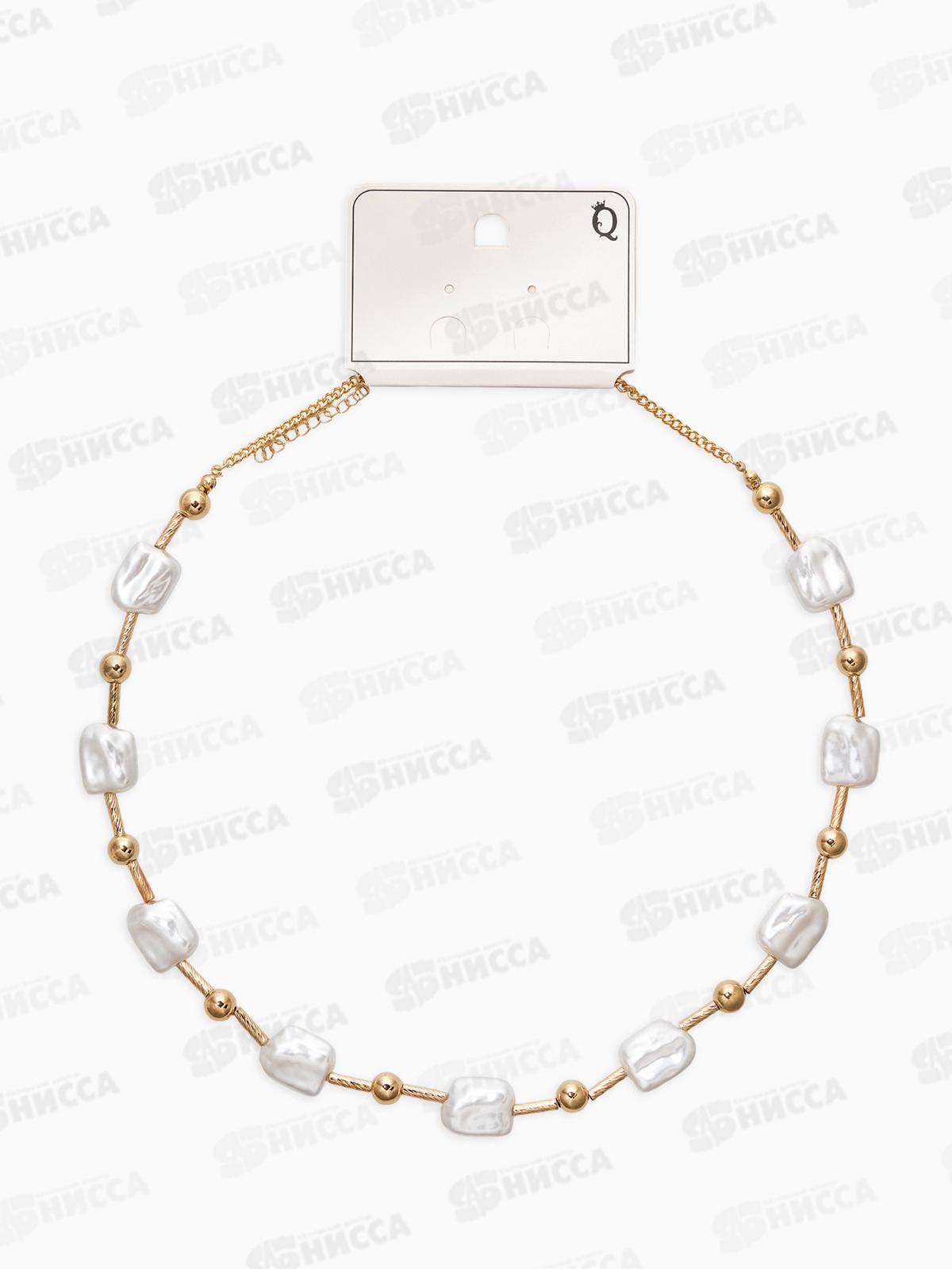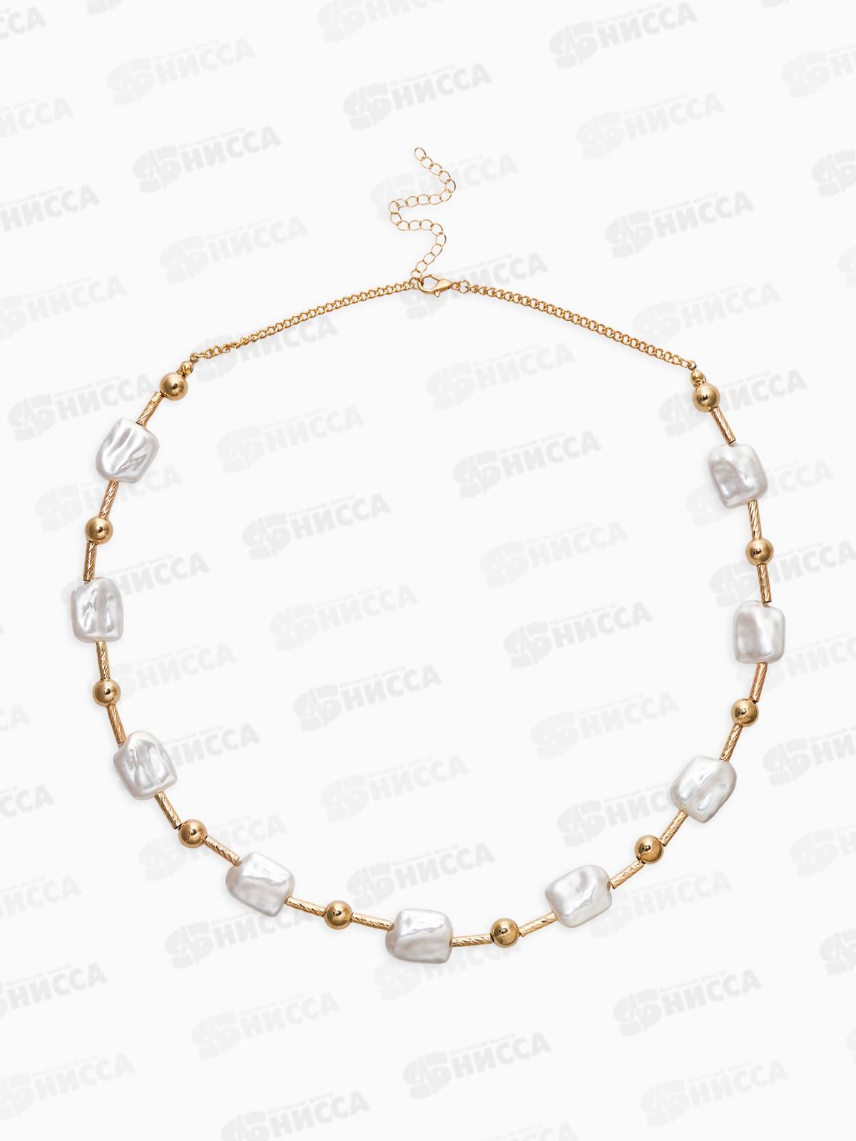 Бусы "Жемчуг" майорка прямоуг.,цвет белый в золоте L=55см 10905808