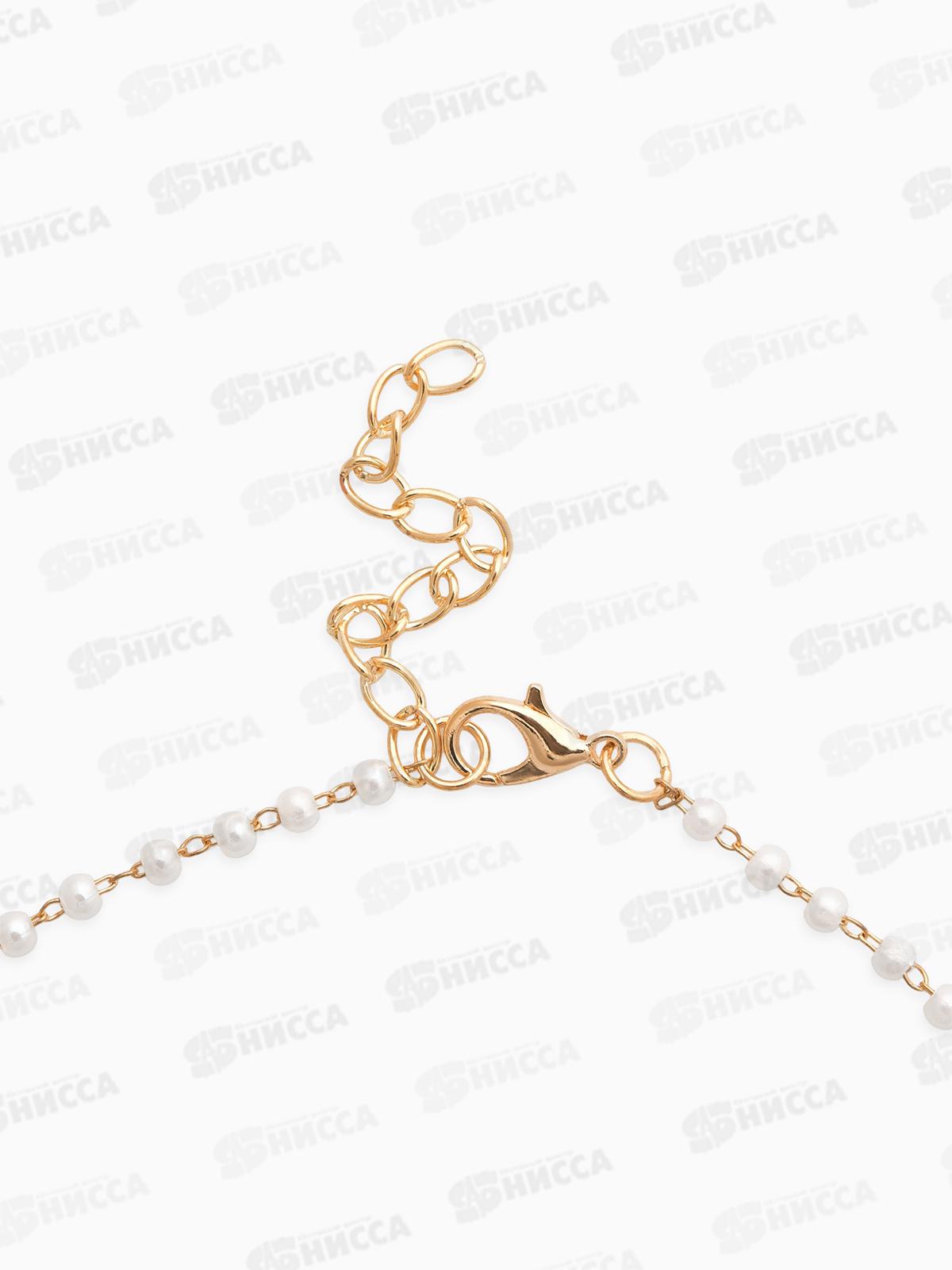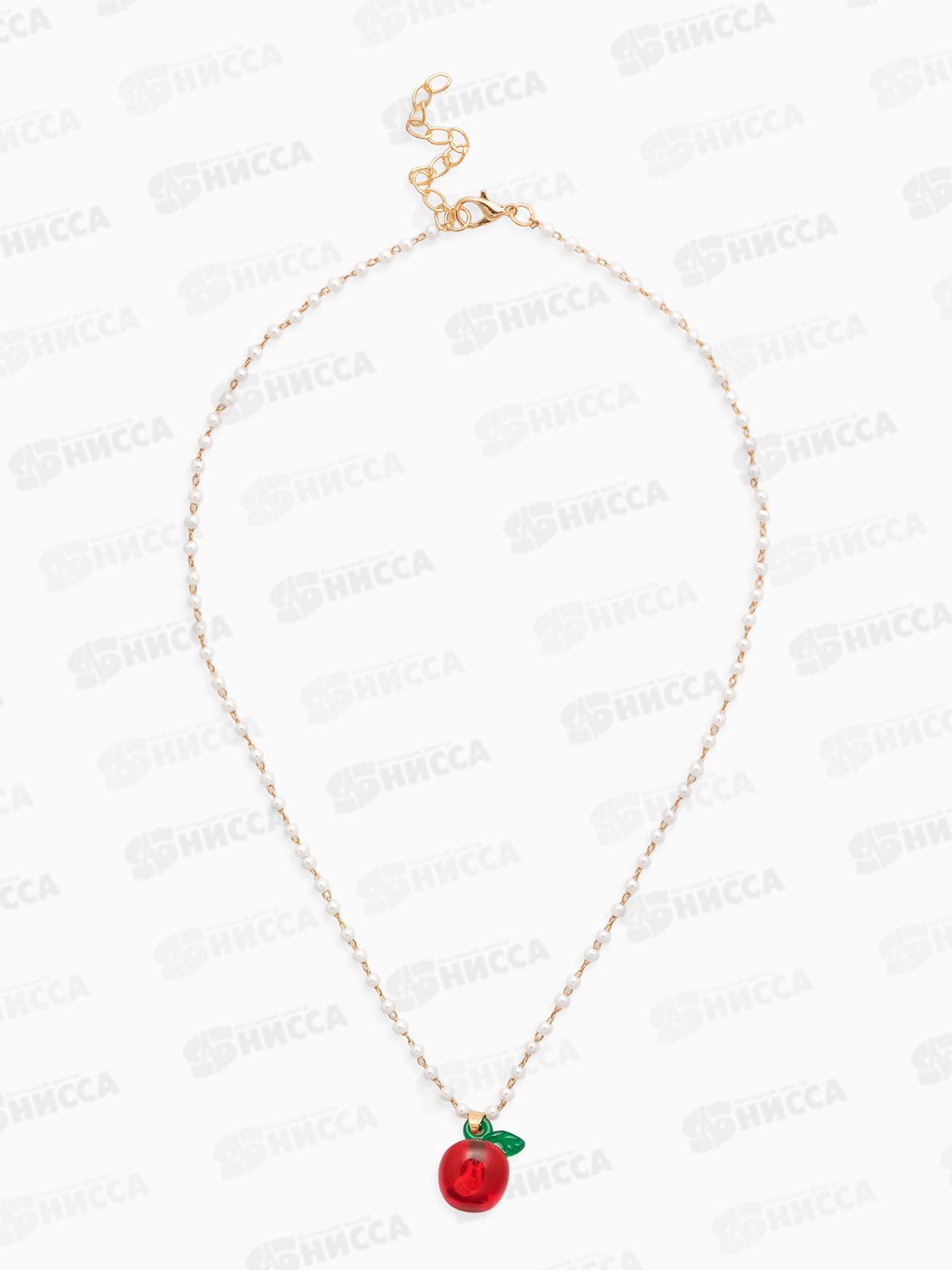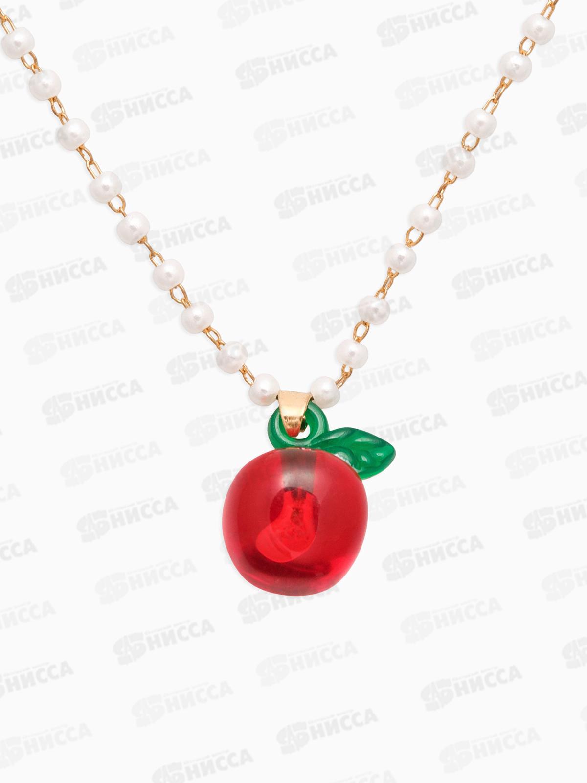 Кулон на жемчужной дорожке "Яблоко" бело-красный в золоте, 10904621