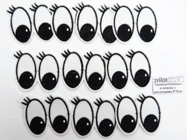 Термоаппликация глазки с ресницами 6*5см белый 10шт 1880998