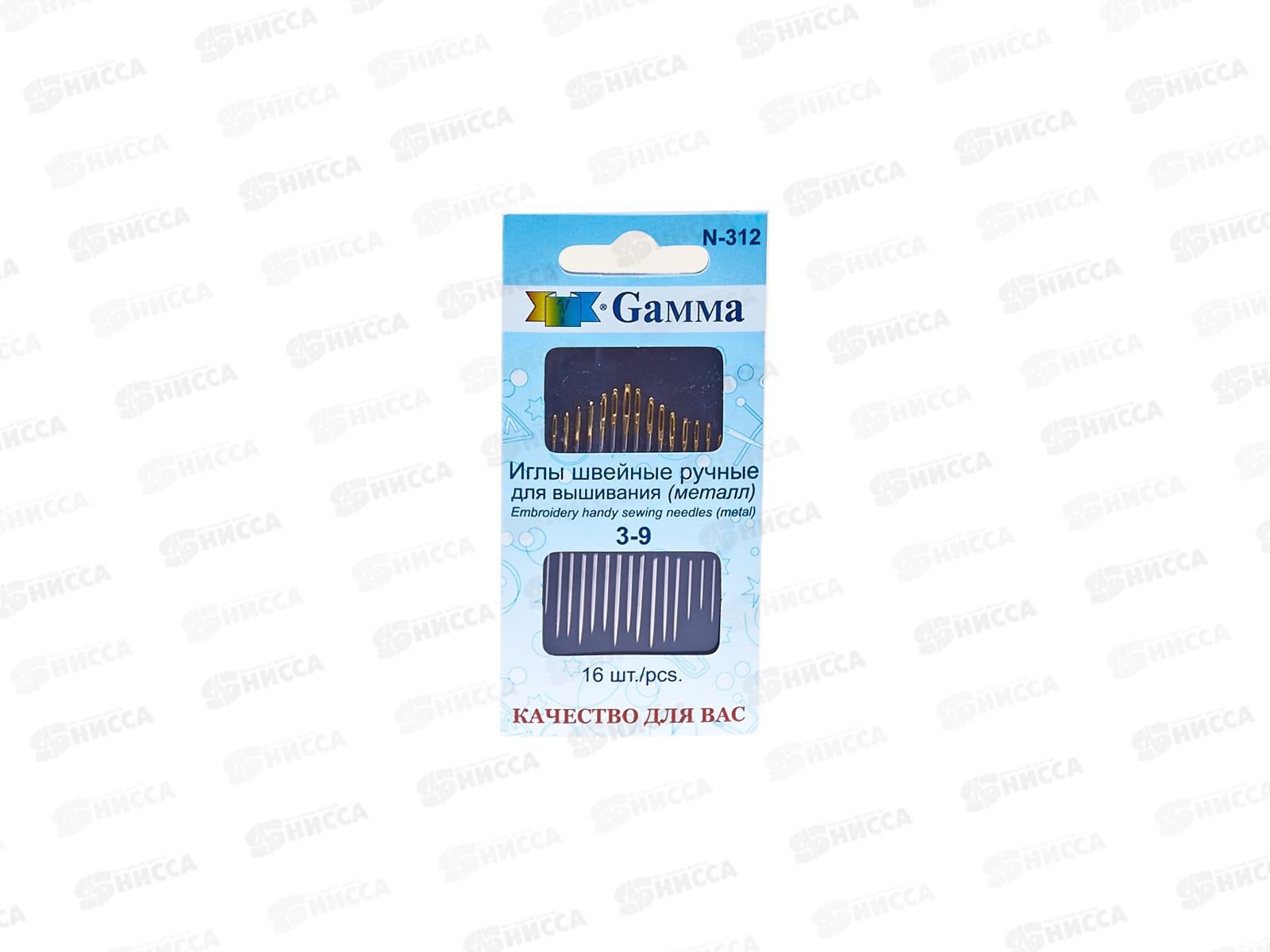 Иглы для шитья ручные "Gamma" N-312 для вышивания №3-9 16шт в конверте *10