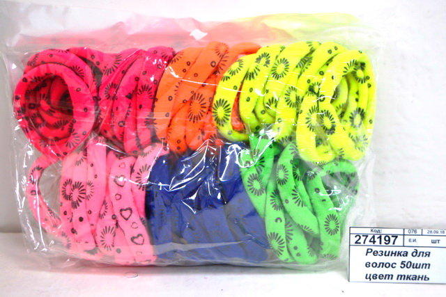 Резинка для волос 50шт цветная ткань (048724) *10 Ж