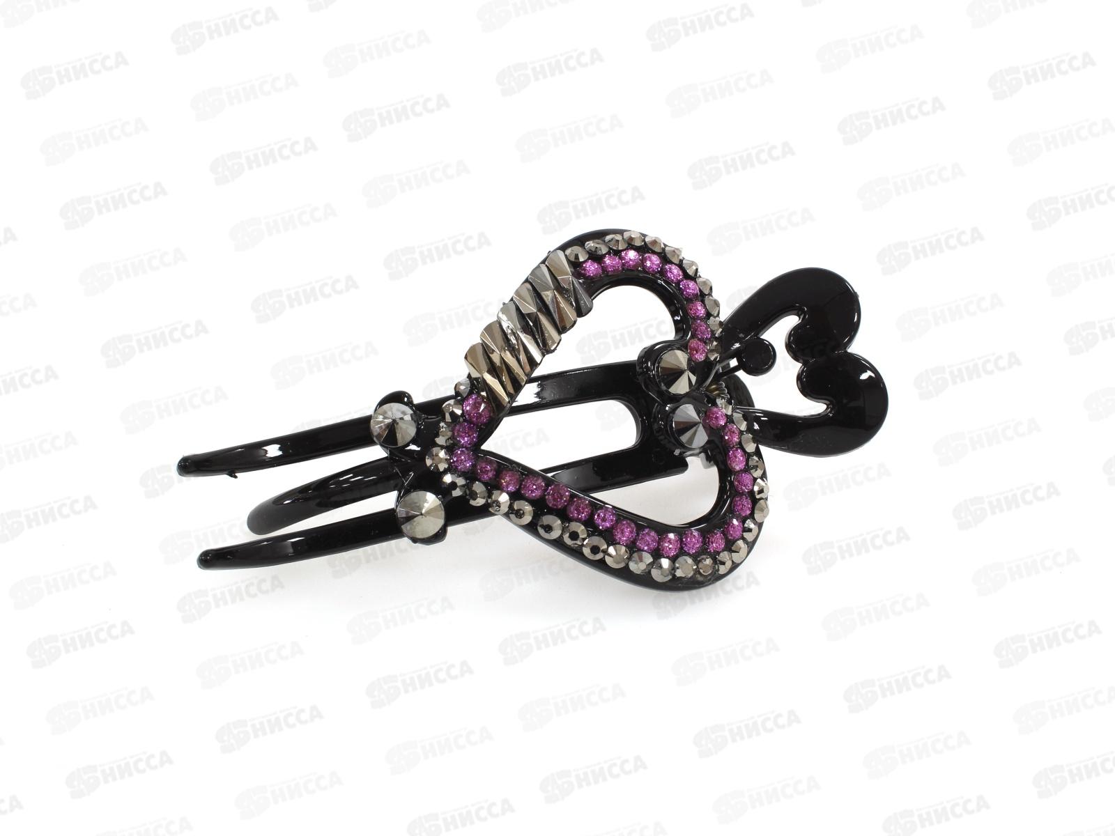 Заколка-Утка ОД446 "Сердце" черно белые стразы *12