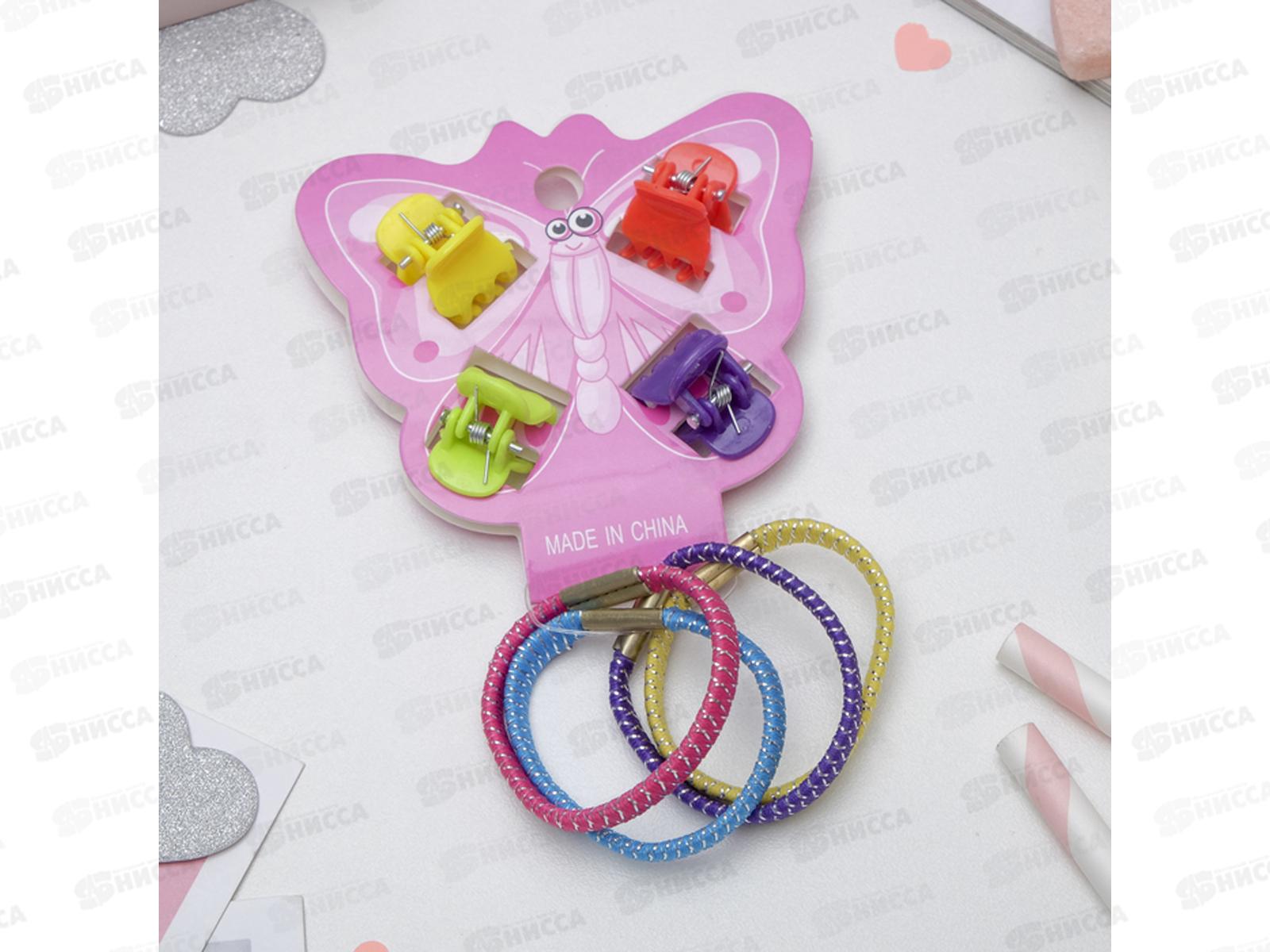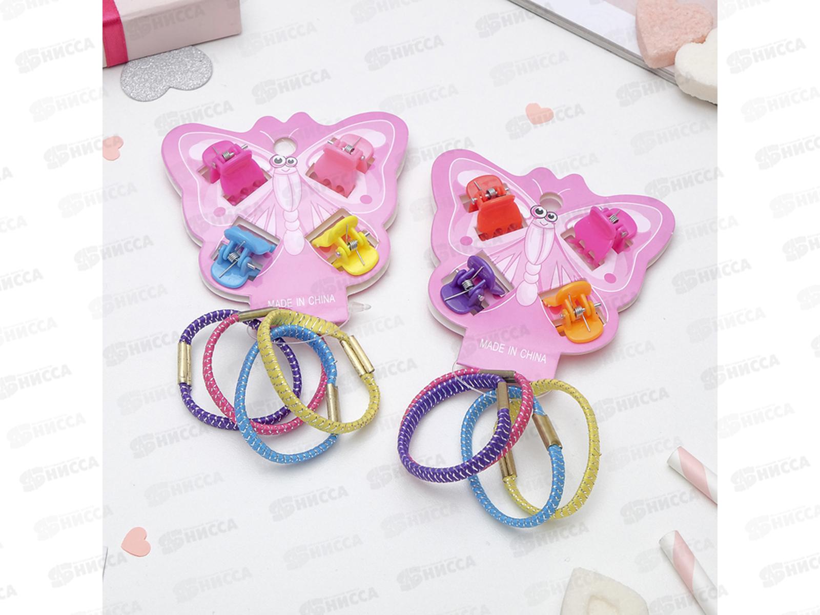 Набор для волос "Бабочка", блеск, яркие, для юных модниц. Состоит из 4 краба и 4 резинки. Резинки и заколочки пригодятся для всевозможных причёсок на каждый день и по праздникам. Используйте аксессуары вместе или по отдельности. Фантазируйте и создавайте новые образы.
