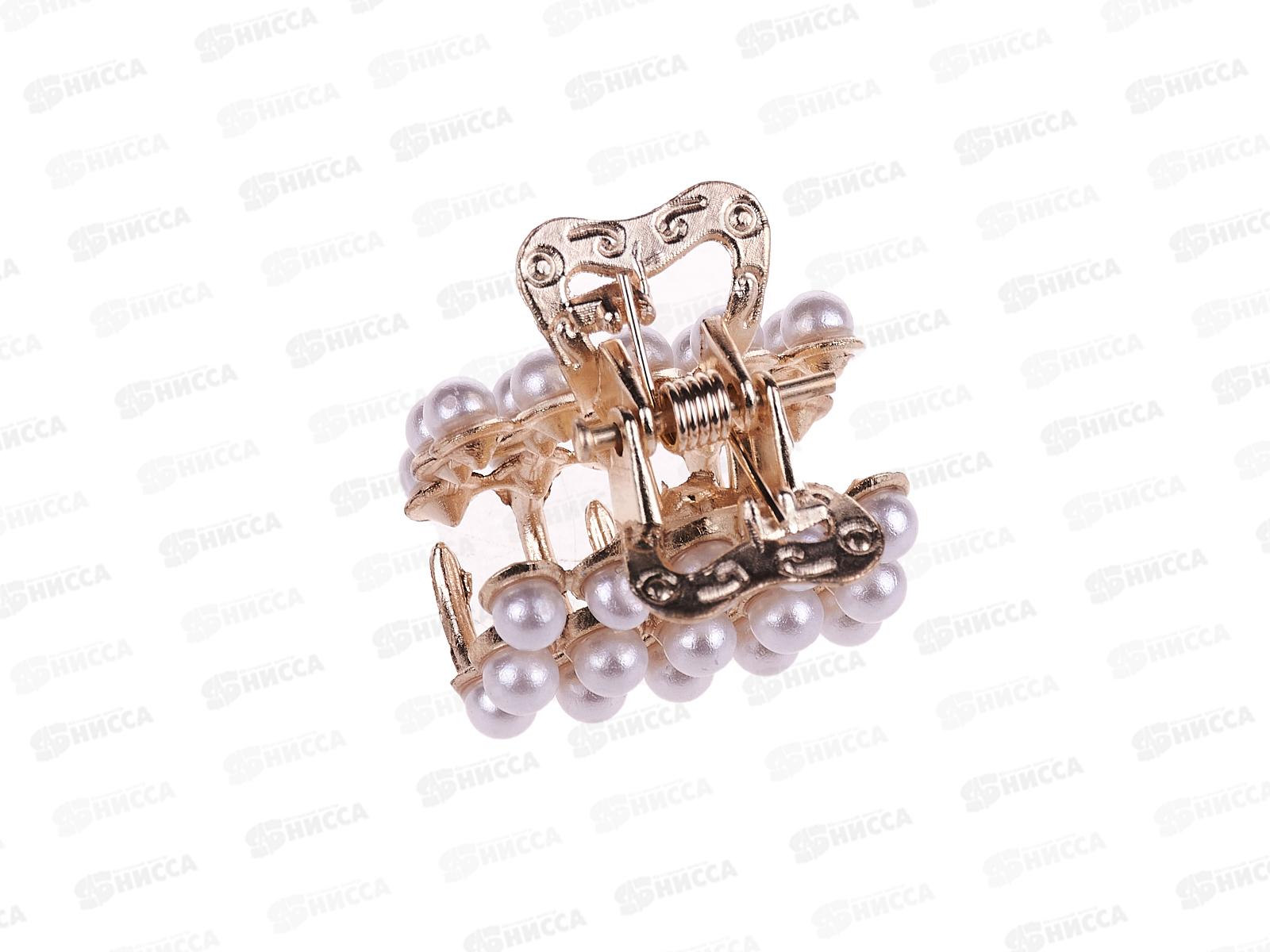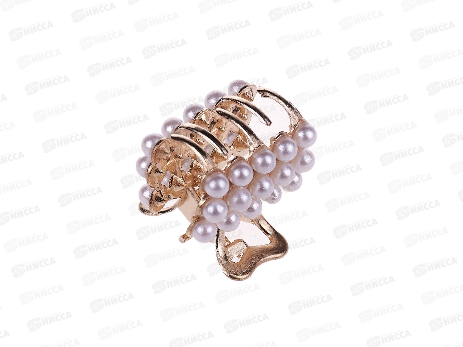 Крабик металлический под золото жемчуг в 3 ряда №6302