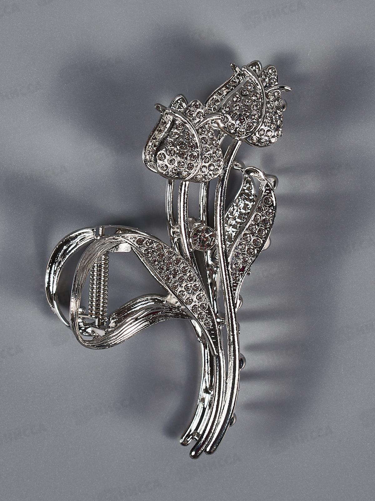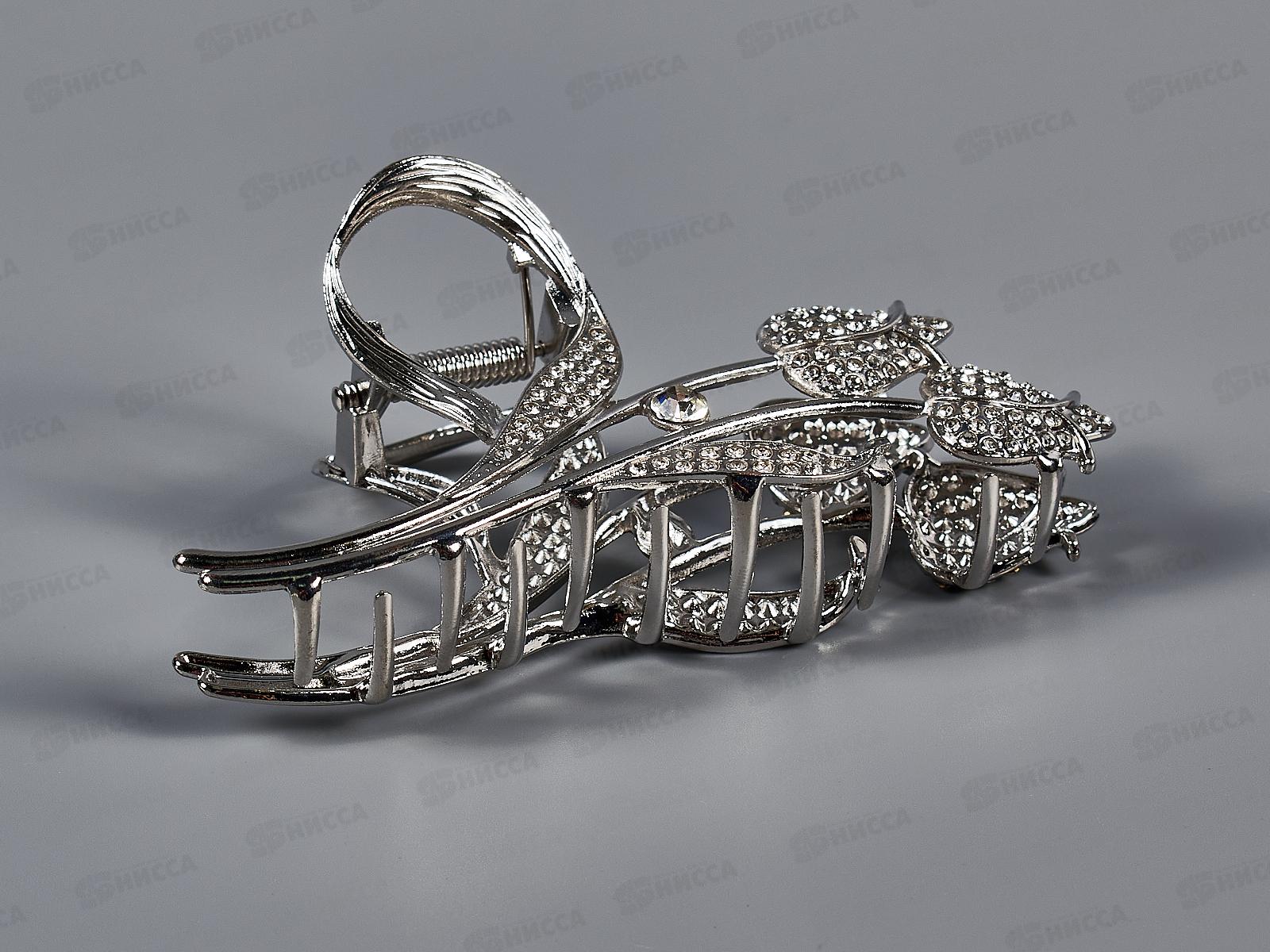 Краб металлический 10см. под серебро "Цветок" со стразами. №8205
