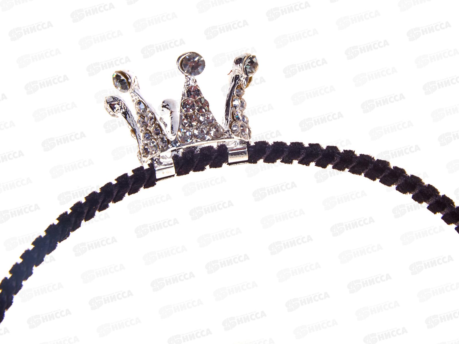 Ободок металл ткань с короной страз №10132