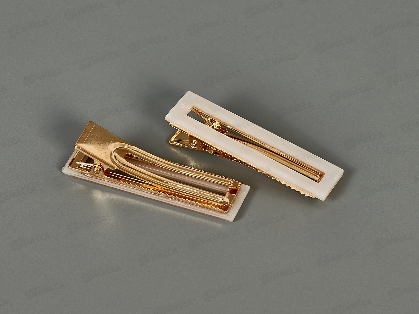 Заколка-уточка металл пластик перлам "Квадрат" №10607 (уп 2шт)