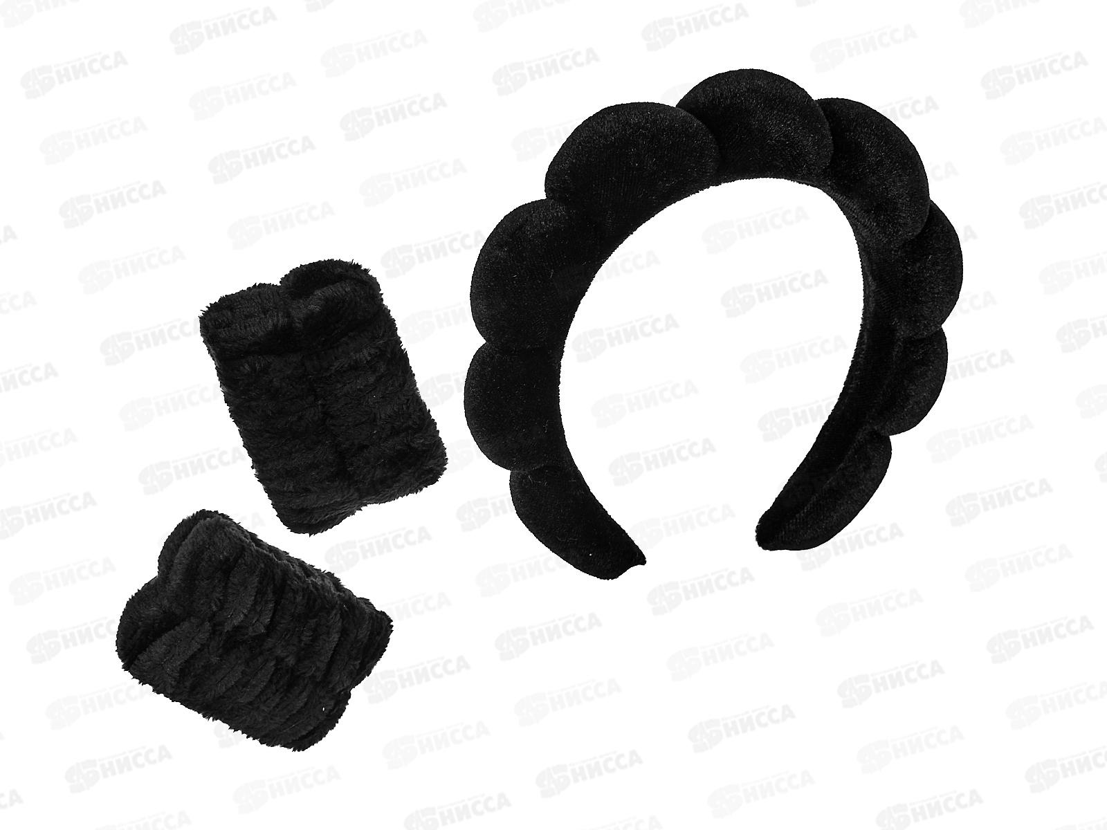 Набор ободок+2 повязки д/умыв бархат цветной №2169