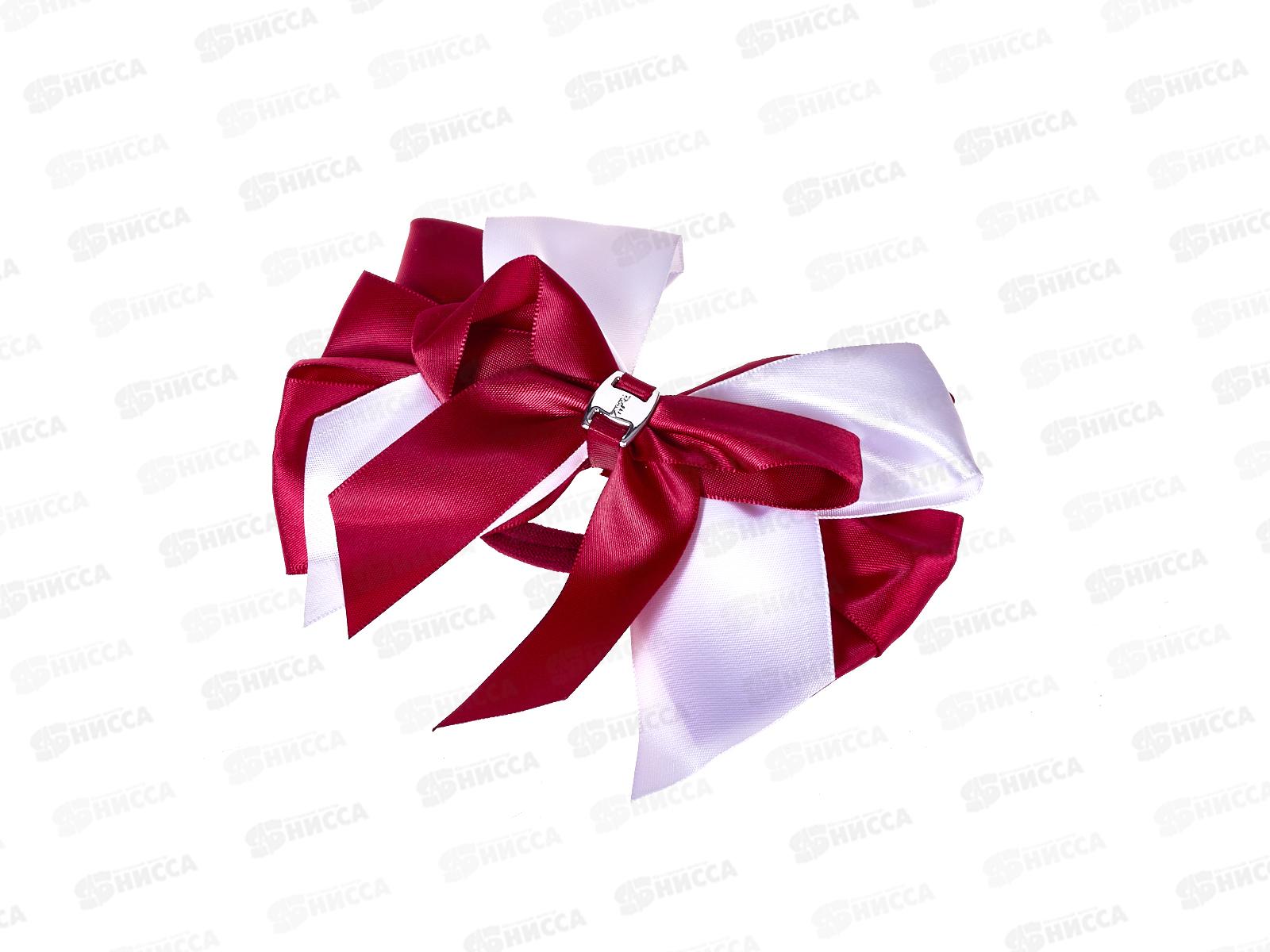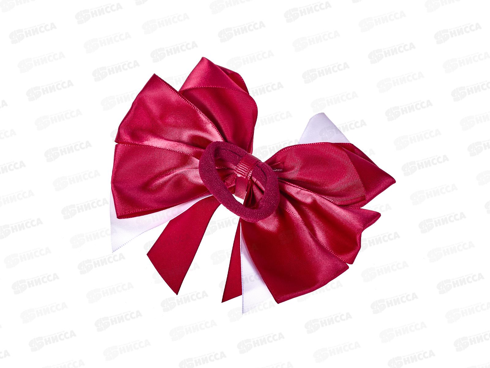 Бант с резинкой шелк бордово-белый 14см №7865