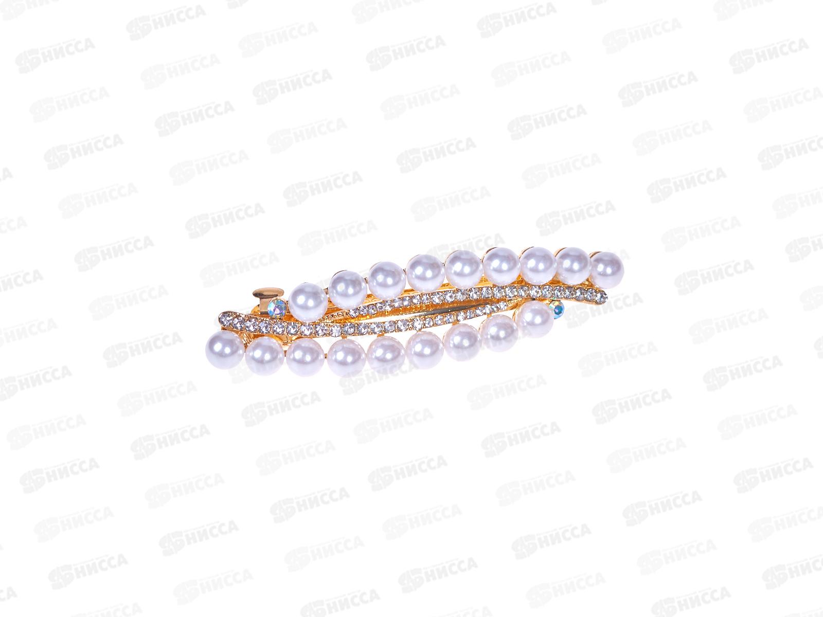 Заколка-автомат жемчуг 2 ряда стразы №9140