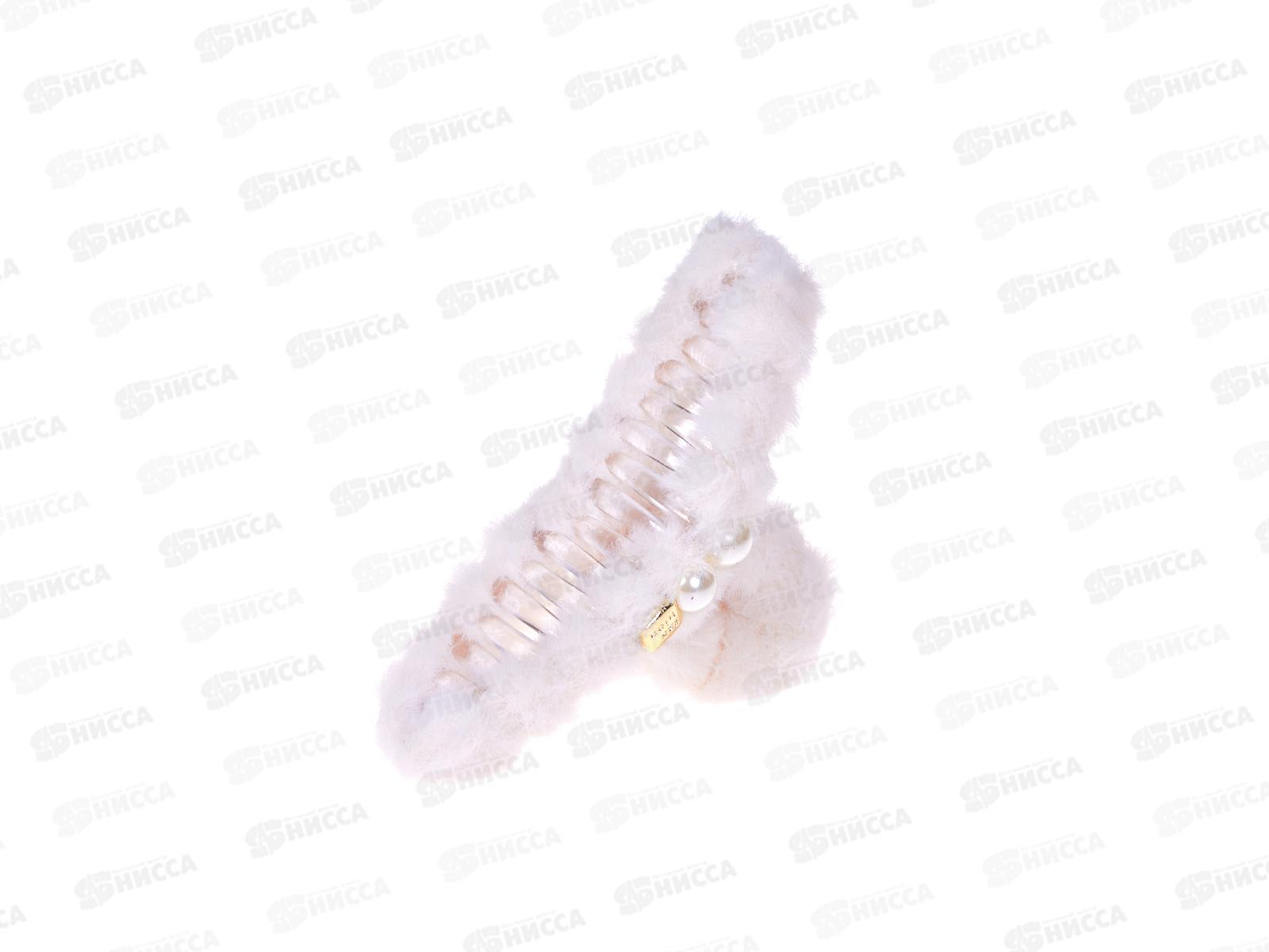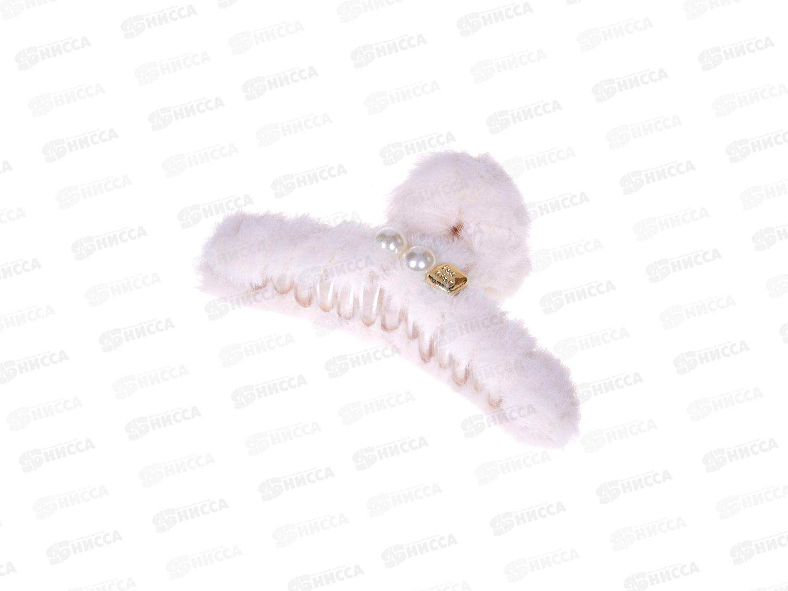 Краб для волос пластик. 12см меховая отделка, жемчуг №129
