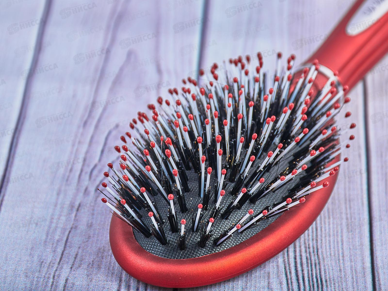 Расческа массажная с пластиковыми зубьями и натуральной щетиной Di Valore серия "Bellissimo"- для расчесывания и укладки волос различной длины с феном или без фена, для улучшения кровообращения кожи головы и стимулирования роста волос.