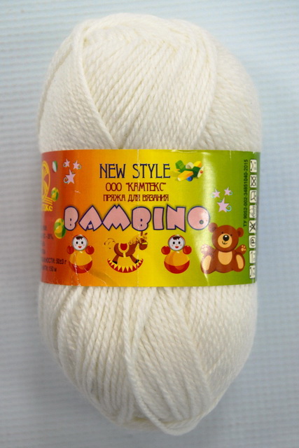 Пряжа Бамбино белый шерсть меринос35% акрил65% 50гр 150м 205 *10