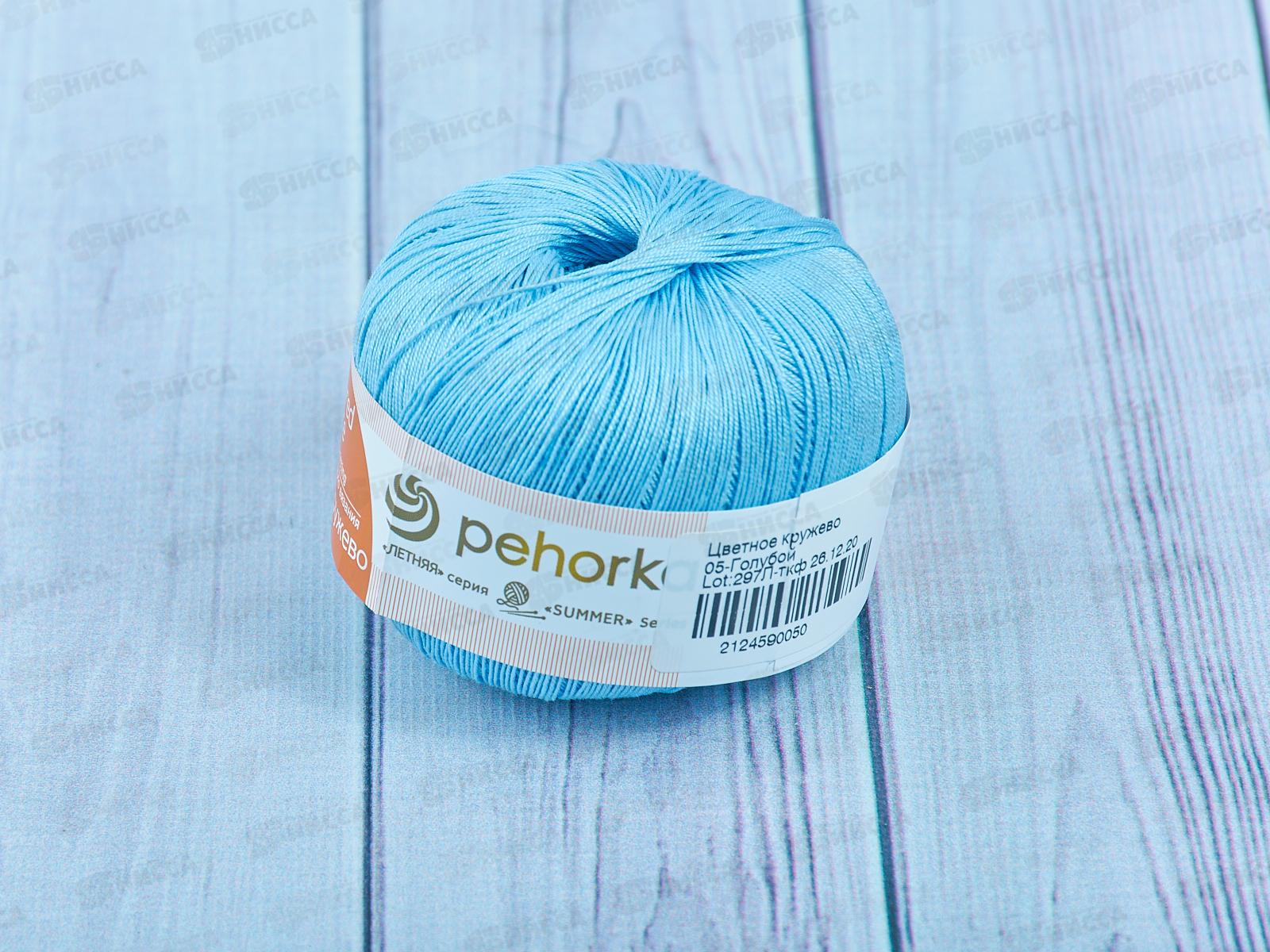 Пряжа Цветное кружево 05 Голубой 50гр Хлопок100%