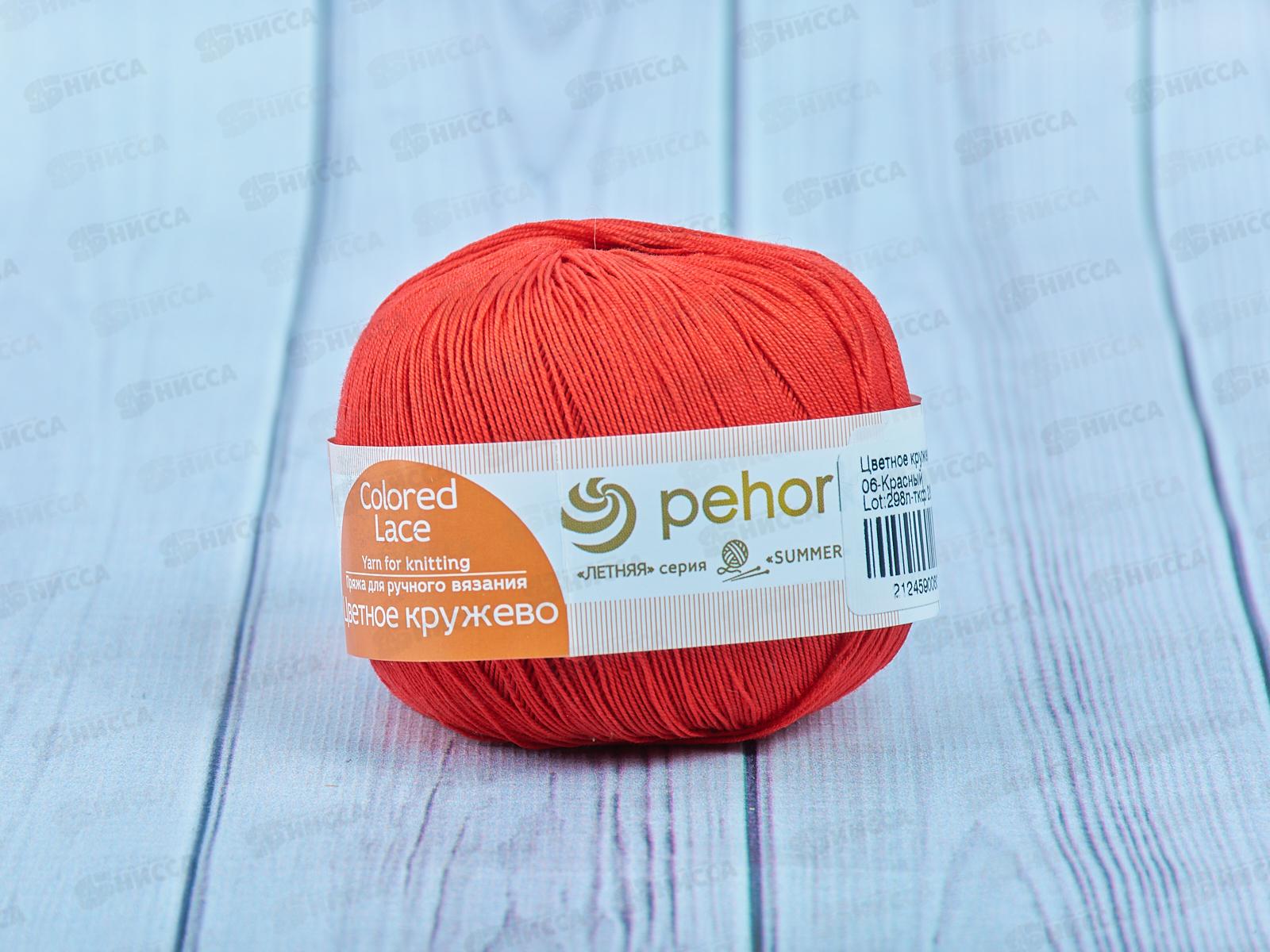 Пряжа Цветное кружево 06 Красный 50гр Хлопок100%