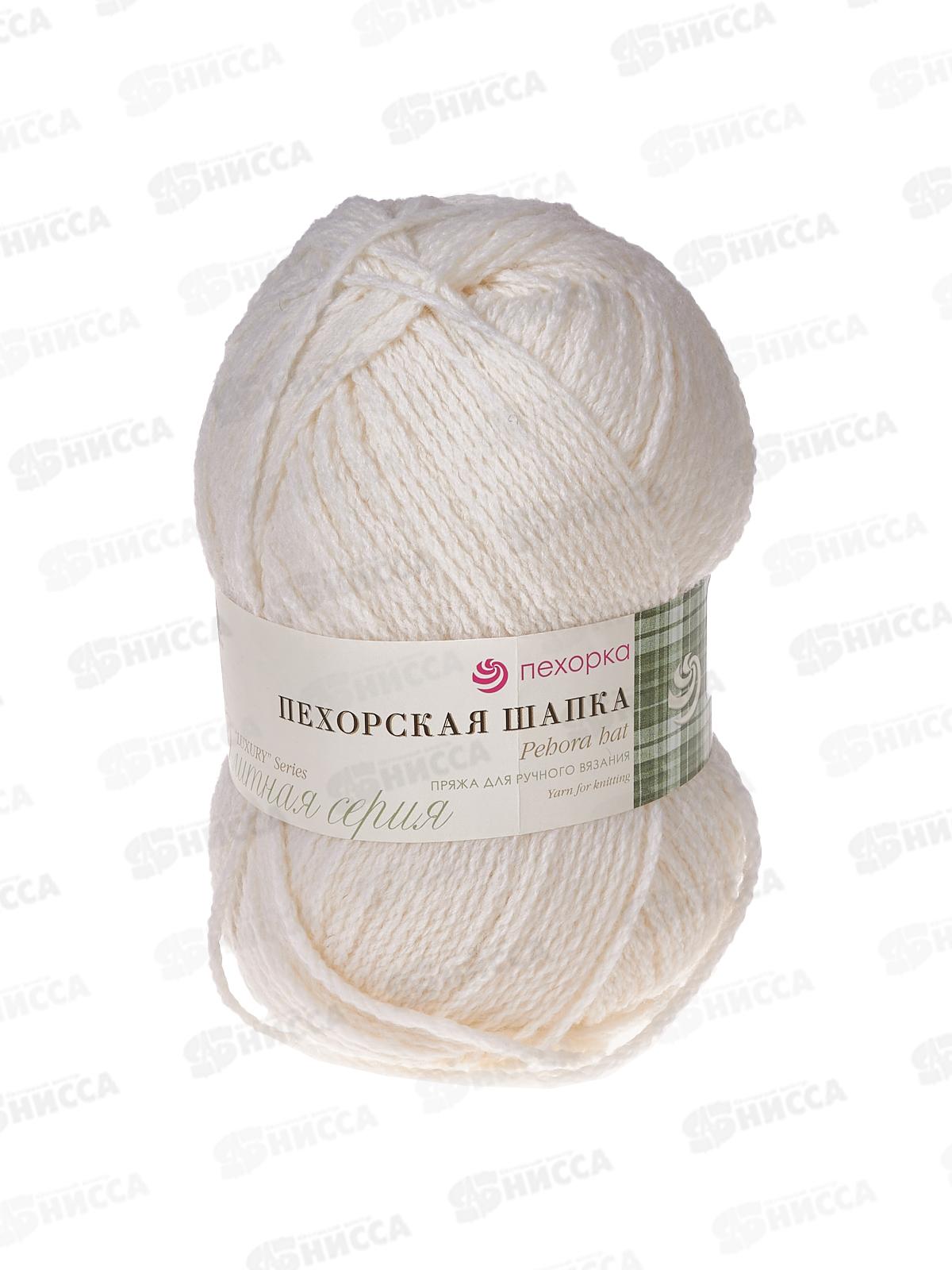 Пряжа Пехорская шапка Белый 01 100г 200м меринос шерсть 85 акрил 15